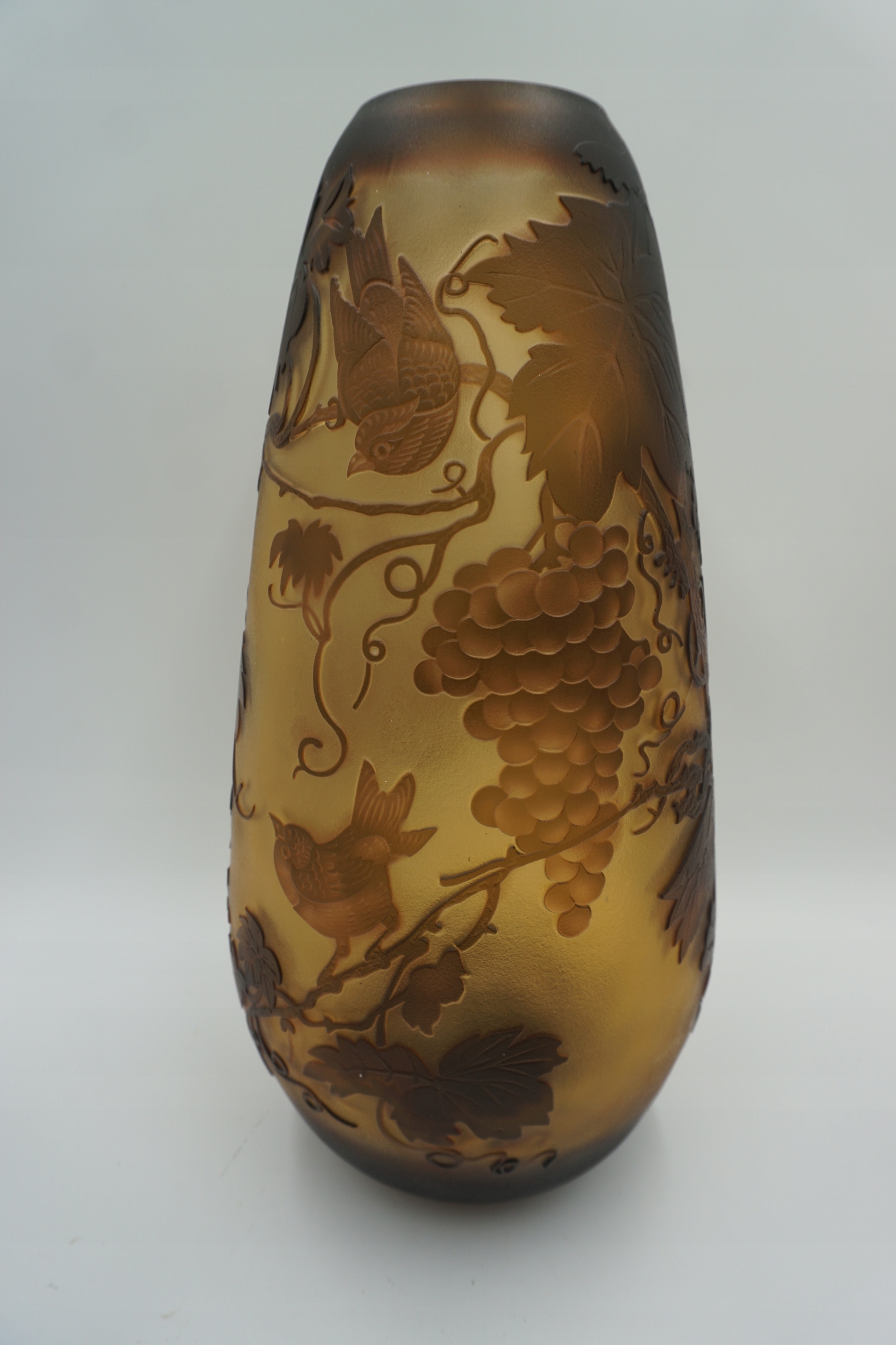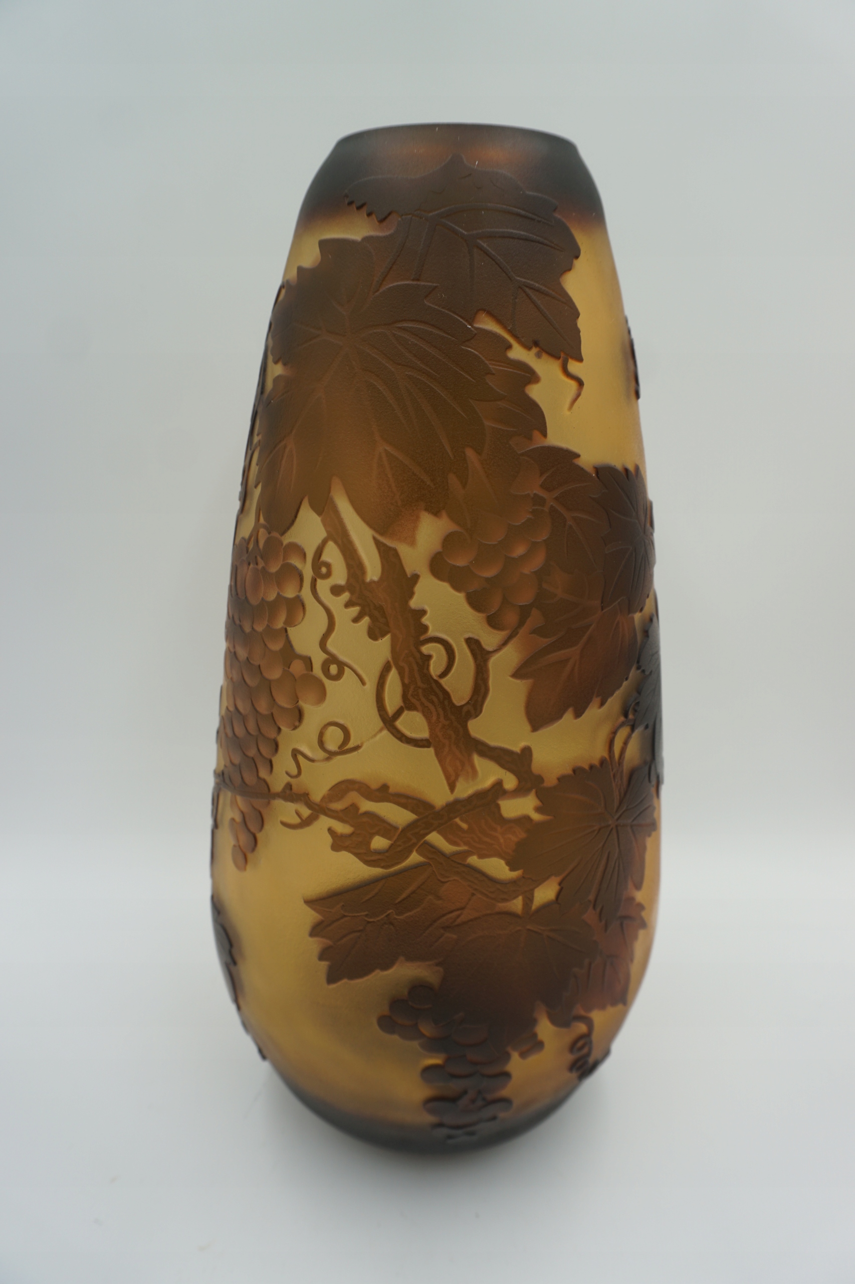 БОЛЬШАЯ КРАСИВАЯ ВАЗА В СТИЛЕ ЭМИЛЯ ГАЛЛЕ – ПЛОТНОЕ СТЕКЛО – ВИНОГРАД.