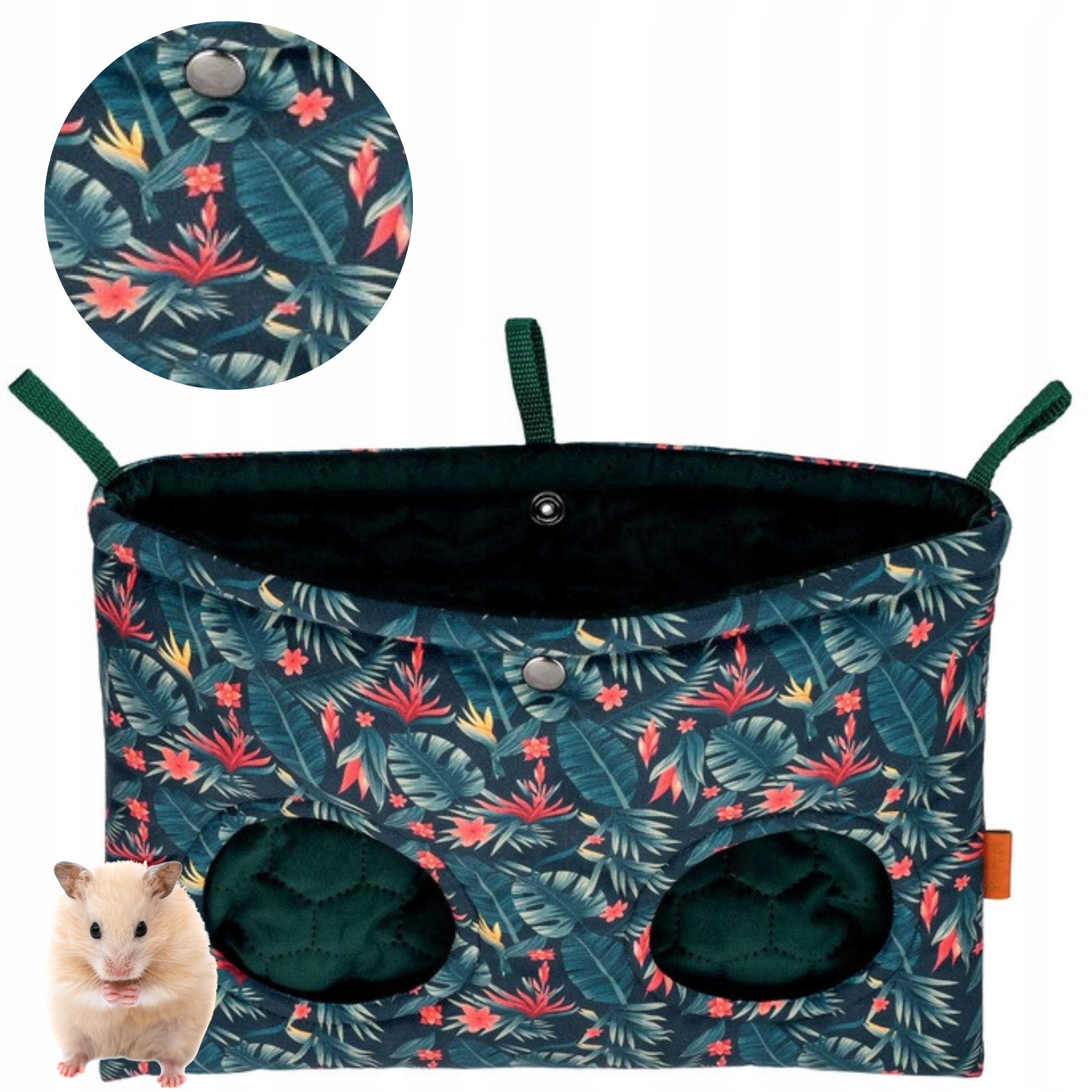 Шьем качественные изделия для грызунов, в том числе кормушки для мелких животных. Выбирайте нашу двойную кормушку для кроликов, морских свинок или шиншилл, которая благодаря своим размерам 35 х 26 (в сантиметрах, ширина х высота) и двум отверстиям диаметром 10 см каждое облегчает доступ к сену. даже для нескольких животных одновременно. Это удобный и практичный способ доставки любимого лакомства. Просто прикрепите кормушку к прутьям клетки с помощью прилагаемых карабинов на нужной высоте, и вы сможете свободно ею пользоваться. Двойная кормушка для кроликов и других домашних животных также является практичным решением для владельцев и опекунов животных. Его можно стирать в стиральной машине или вручную, он не деформируется и не растягивается, поэтому прослужит вам долго.