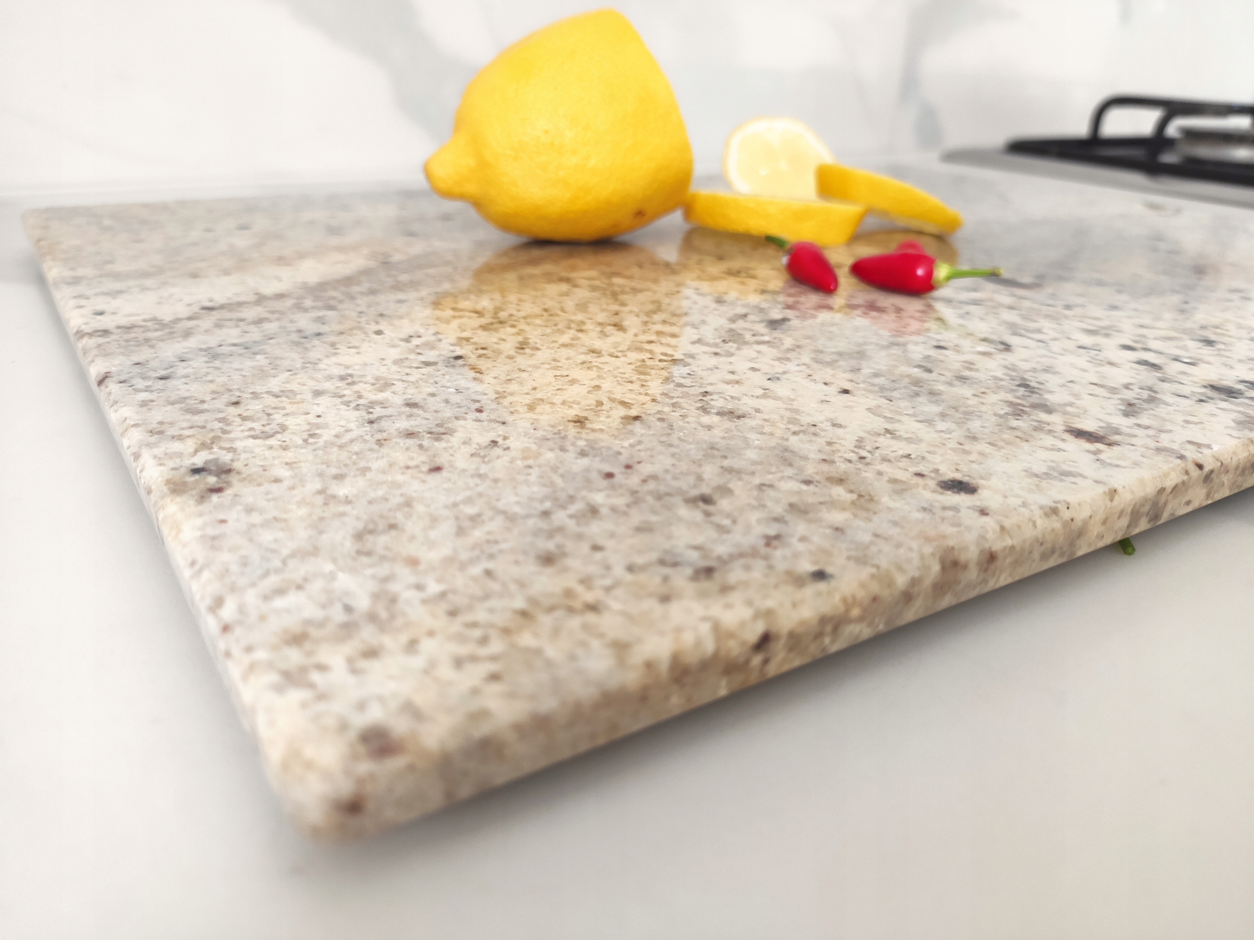 Большая гранитная рубкая доска для кухни тысячелетний крем 30x40 см.