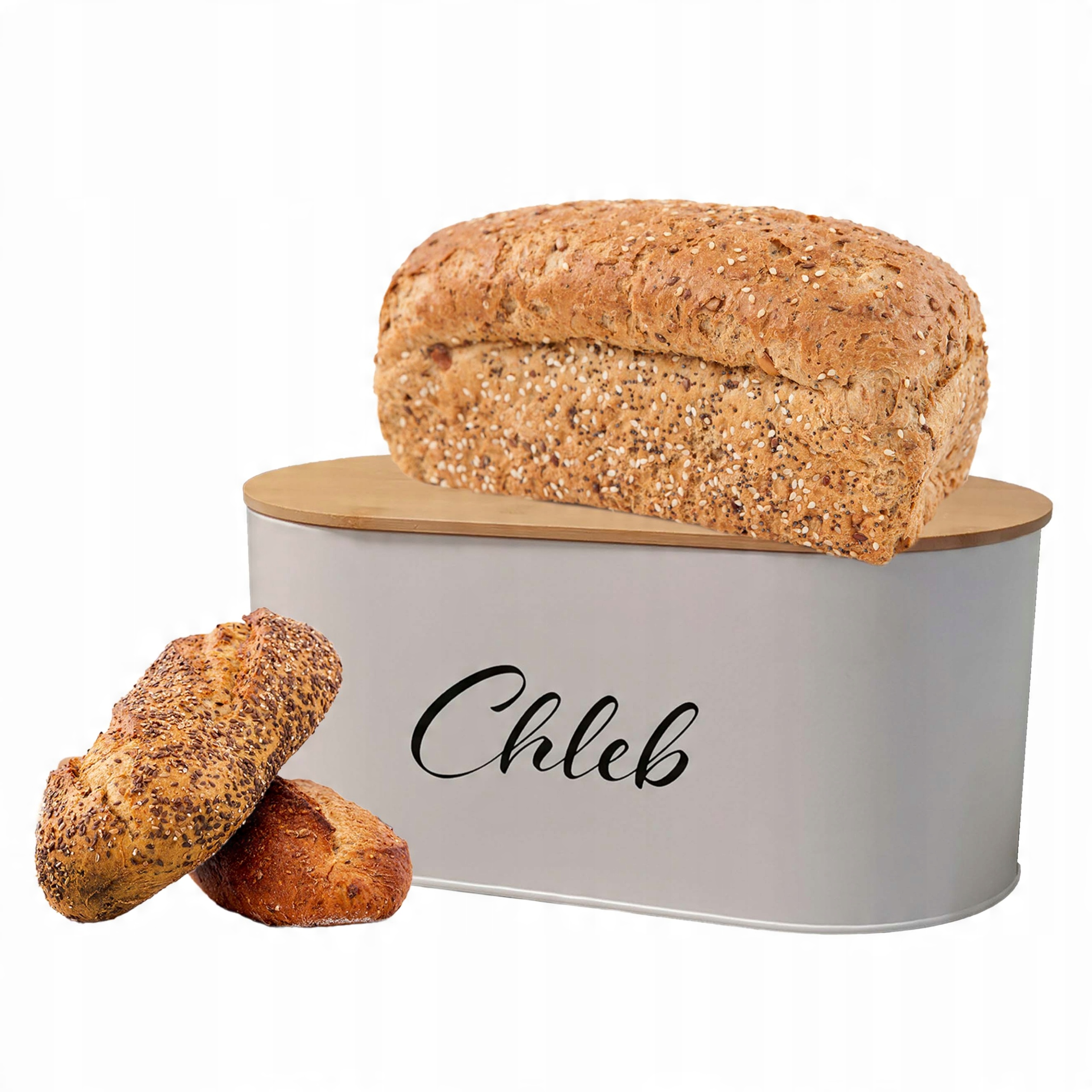 ВЕЛИКА ХЛІБНИЦЯ З КРИШКОЮ БАМБУКОВА ДОШКА СТАЛЬ WZ01 БІЛА