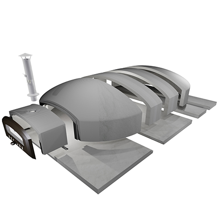 Эта печь изготовлена из специальных огнеупорных материалов, выдерживающих очень высокие температуры, даже свыше 1000°C. Это приводит к быстрому достижению высоких температур, низкому расходу древесины и быстрому выпеканию.
