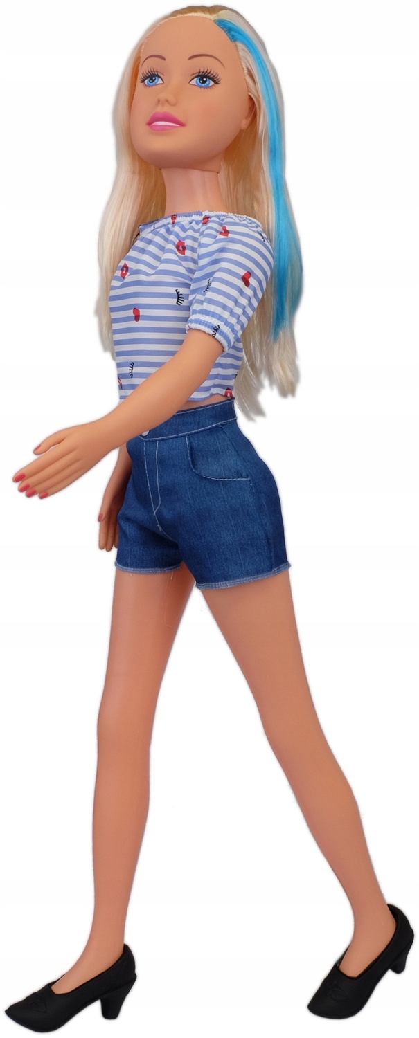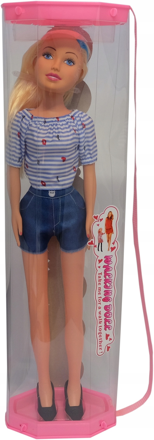 Кукла высотой 80 см, которая благодаря специальному механизму ходит вместе с ребенком, когда ее держит за руку. Кукла одета в красивую блузку, джинсовые шорты и черные туфли, что делает ее настоящей звездой модного показа!
