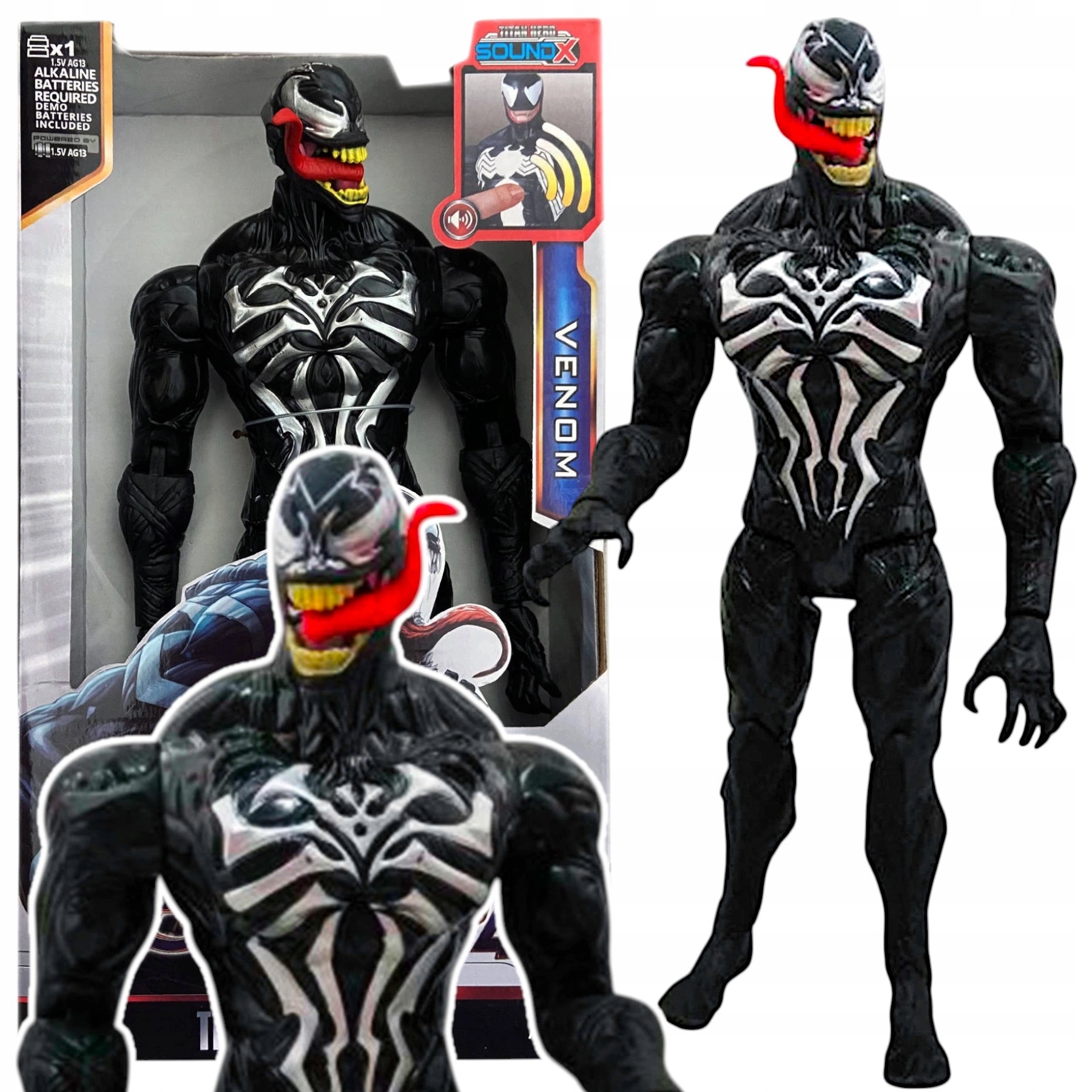 БОЛЬШАЯ ИНТЕРАКТИВНАЯ ПОДВИЖНАЯ ФИГУРКА ВЕНОМ СО ЗВУКОМ 30 СМ, ДВИЖЕНИЯ МСТИТЕЛЕЙ