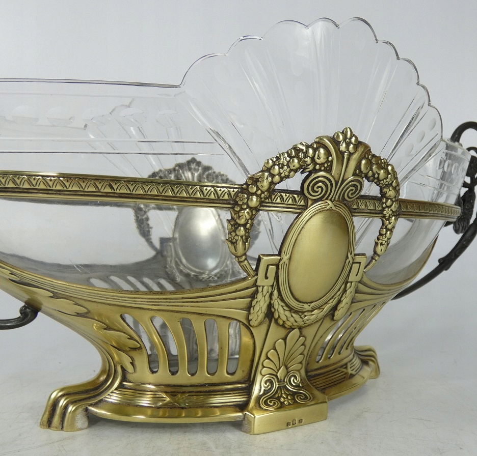 Большая тарелка JARDINIERA, стекло, хрусталь, посеребренная латунь, WMF SECESJA, 49,5 см