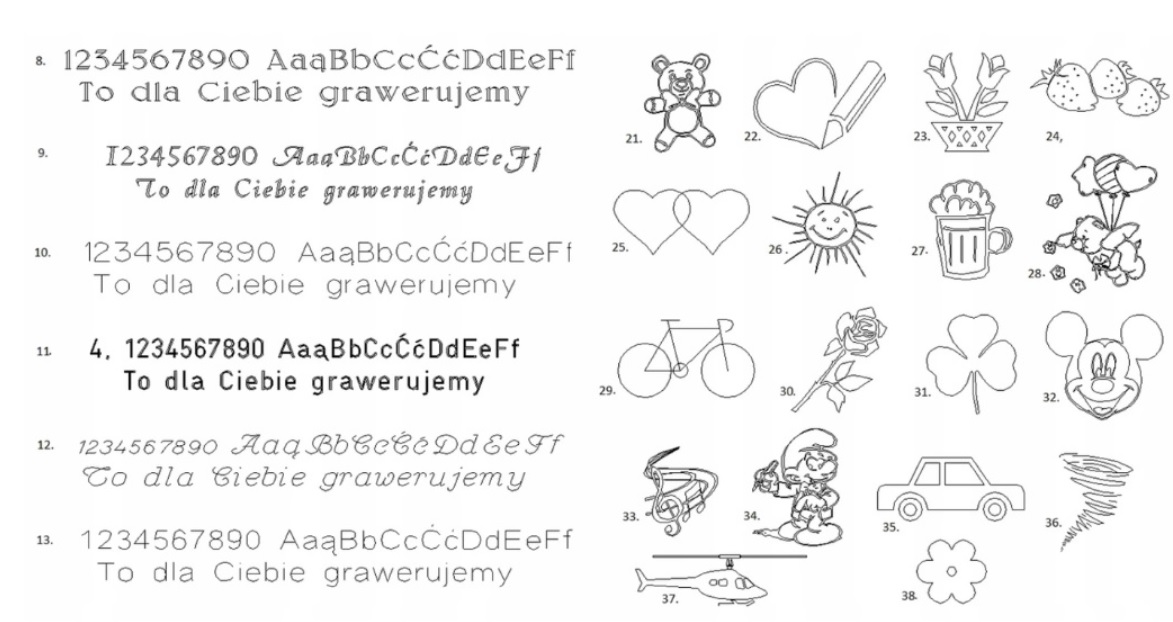 Рекомендации по гравировке: Присылайте фотографии в формате JPG или EPS, графику, текст и символы шрифта для гравировки по электронной почте.