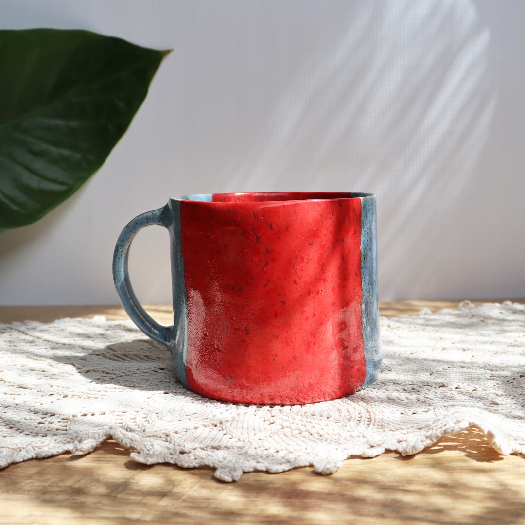 Для настоящих вентиляторов мы представляем большую керамическую чашку с вместимостью 550 мл. Ручная работа, характеризуется комбинацией красной и синей эмали, которая образует ремень над серединой чашки, деляя его на три части.