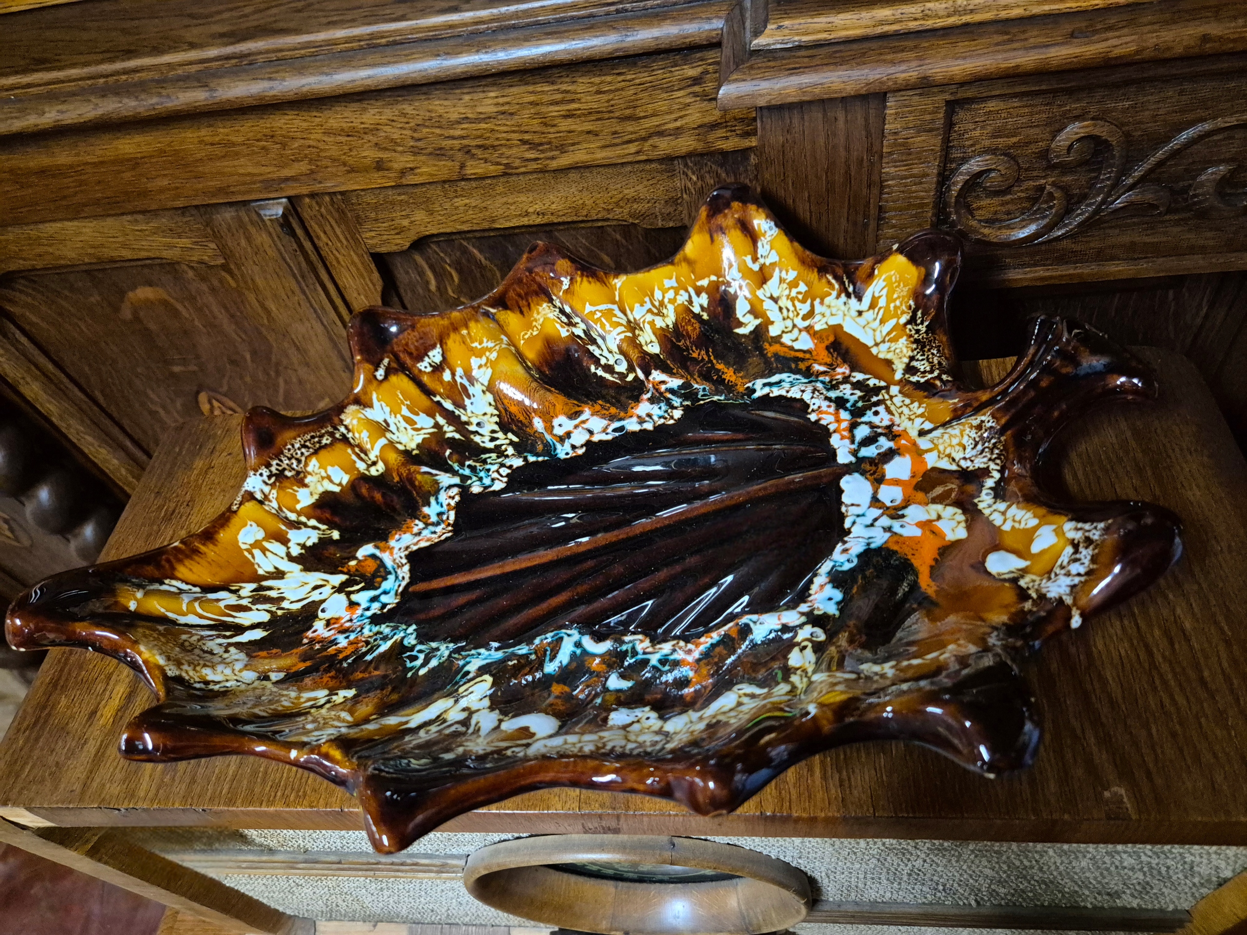 Велика керамічна патера у формі листка