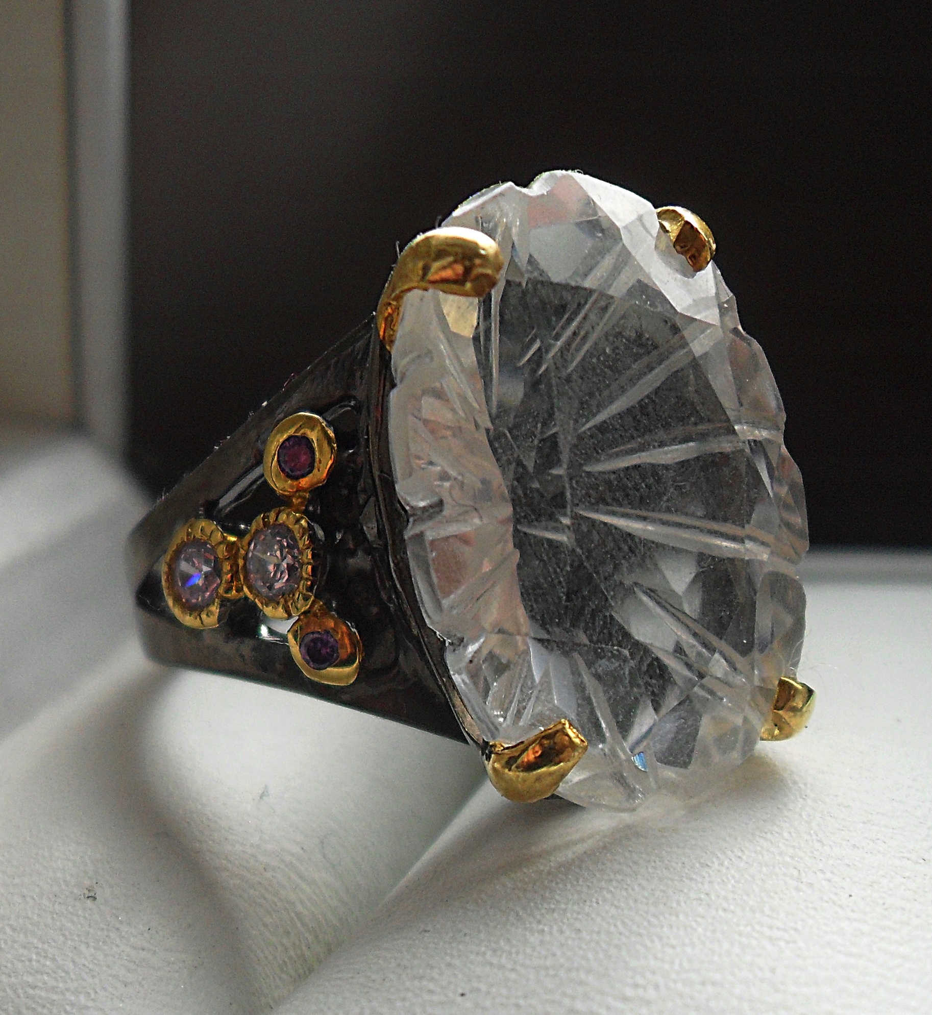 ВЕЛИКА КІЛЬЦЯ З БІЛИМ КРИСТАЛЕМ, ВІД АНТИЧНОГО РІЗЬБЛЕННЯ
