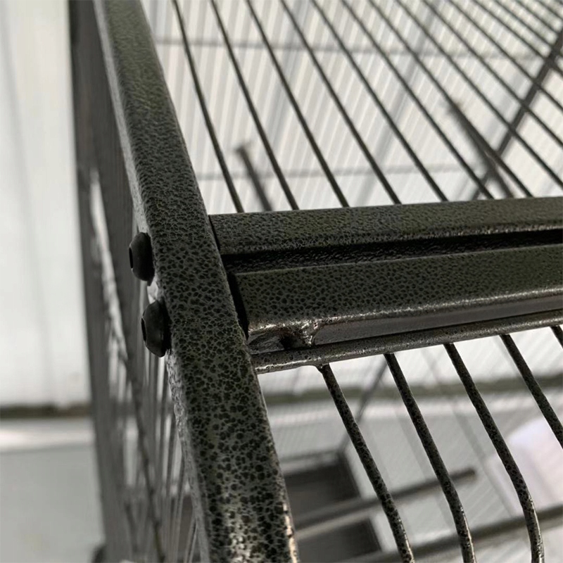 Прочная конструкция клетки гарантирует устойчивость и безопасность птиц. Тщательная обработка черной стали не только придает конструкции элегантность, но и защищает ее от внешних факторов. Прочные материалы обеспечивают длительную функциональность клетки.