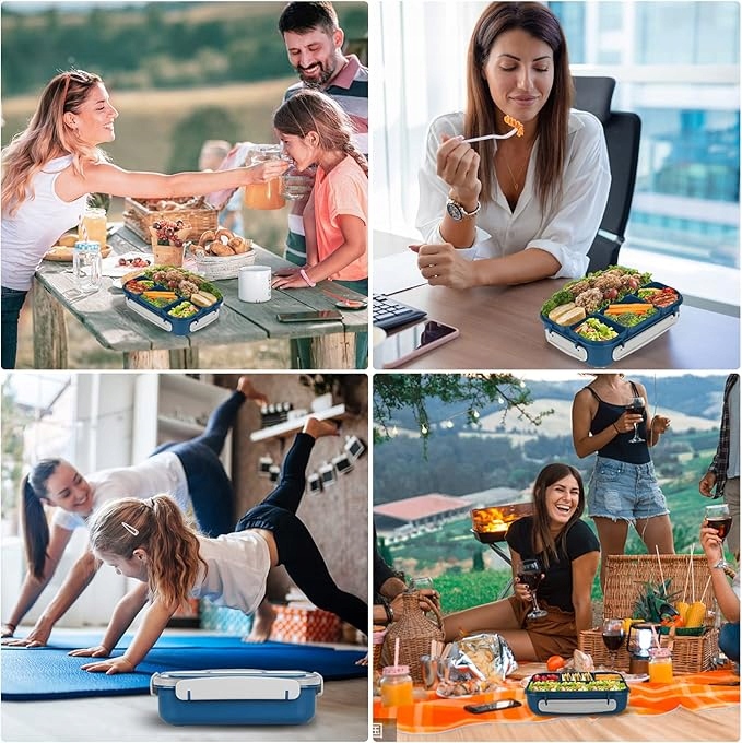 Большая коробка для завтрака с 4 отсеками для контейнера 27el Blue