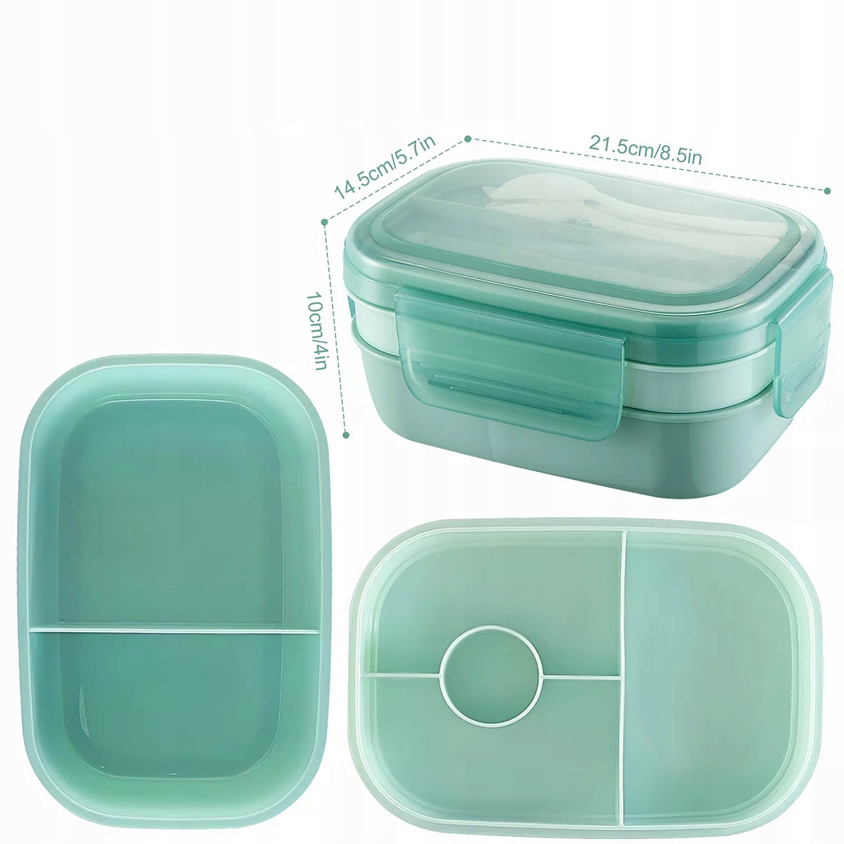 Lunchbox с отсеками, 1900 мл, коробка Bento для детей/ взрослых, 3-слойный, с пластиковым ножом, вилкой и ложкой, без BPA (светло-зеленый) h1>
