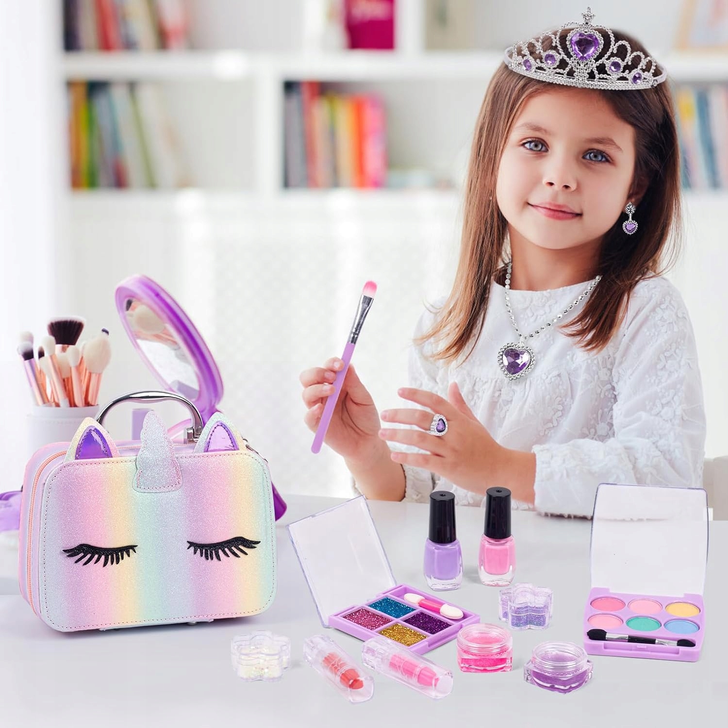 - Косметика в нашем наборе предназначена для нежной детской кожи, не вызывает раздражений, для безопасной игры можно смывать водой.