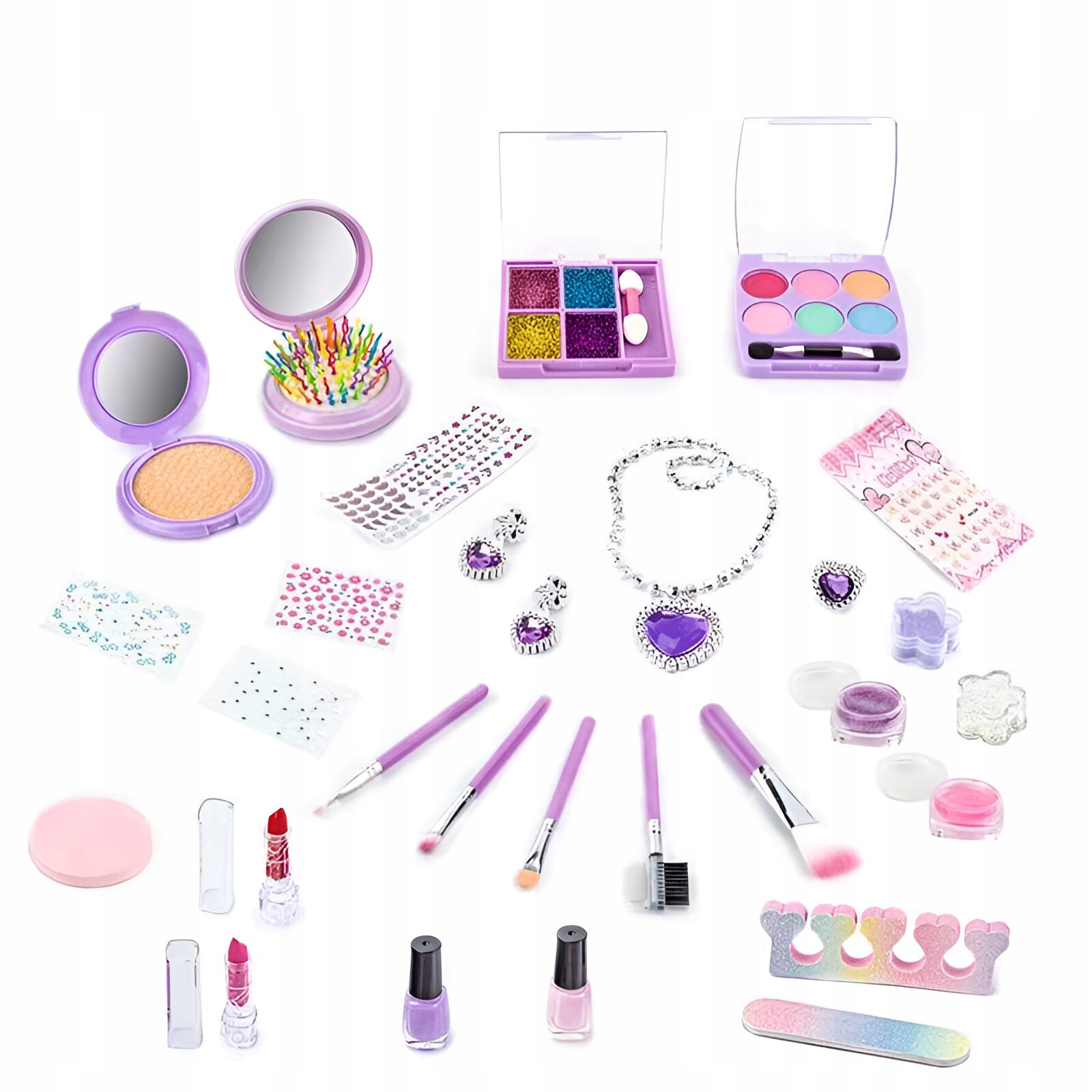 - От блесток до помады, лака для ногтей и теней для век – набор включает в себя все необходимое для создания полноценного макияжа и выражения своих творческих способностей