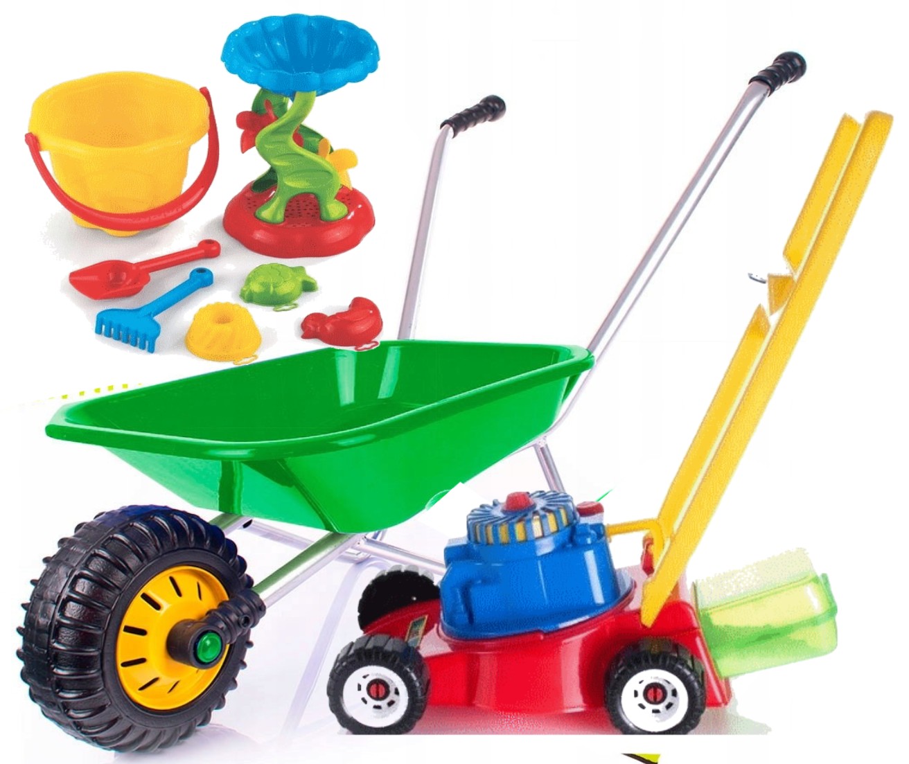 БОЛЬШОЙ НАБОР ТАЧКИ + КОСИЛКА + НАБОР ВЕДРА С ИЗМЕЛЬЧИТЕЛЬНОЙ ЛОПАТКОЙ RABBES ФОРМЫ