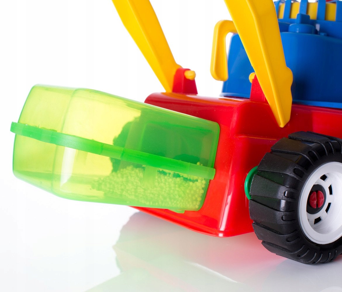 Газонокосилка не только выглядит предельно реалистично, как настоящая, но и издает дребезжащие звуки, имитирующие звуки кошения. Это невероятное удовольствие! Привлекательность удовольствия придает клавиша (клик-клак), размещенная на ручке запуска косилки, издающая характерные звуки при повороте, а также открывающийся бензобак и имитация тахометра и часов. Потяните за ручку, чтобы запустить косилку – вы приведете в движение вращающееся колесо. Дополнительным аттракционом являются пенопластовые шарики, вращающиеся в прозрачной корзине. Во время движения они приводятся в движение вращающимся колесом и лопастями. Ваш малыш будет гордиться тем, что может управлять газонокосилкой так же, как вы! И это совершенно безопасно.