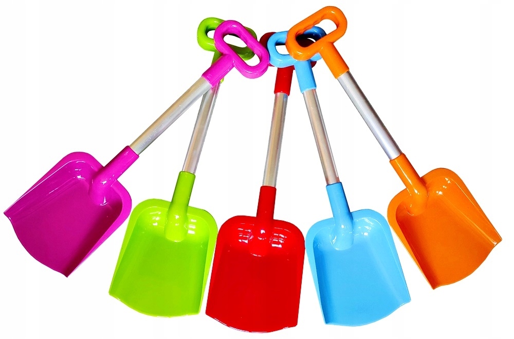 - лопата поставляется в пяти цветах: розовый, оранжевый, синий, красный и зеленый.