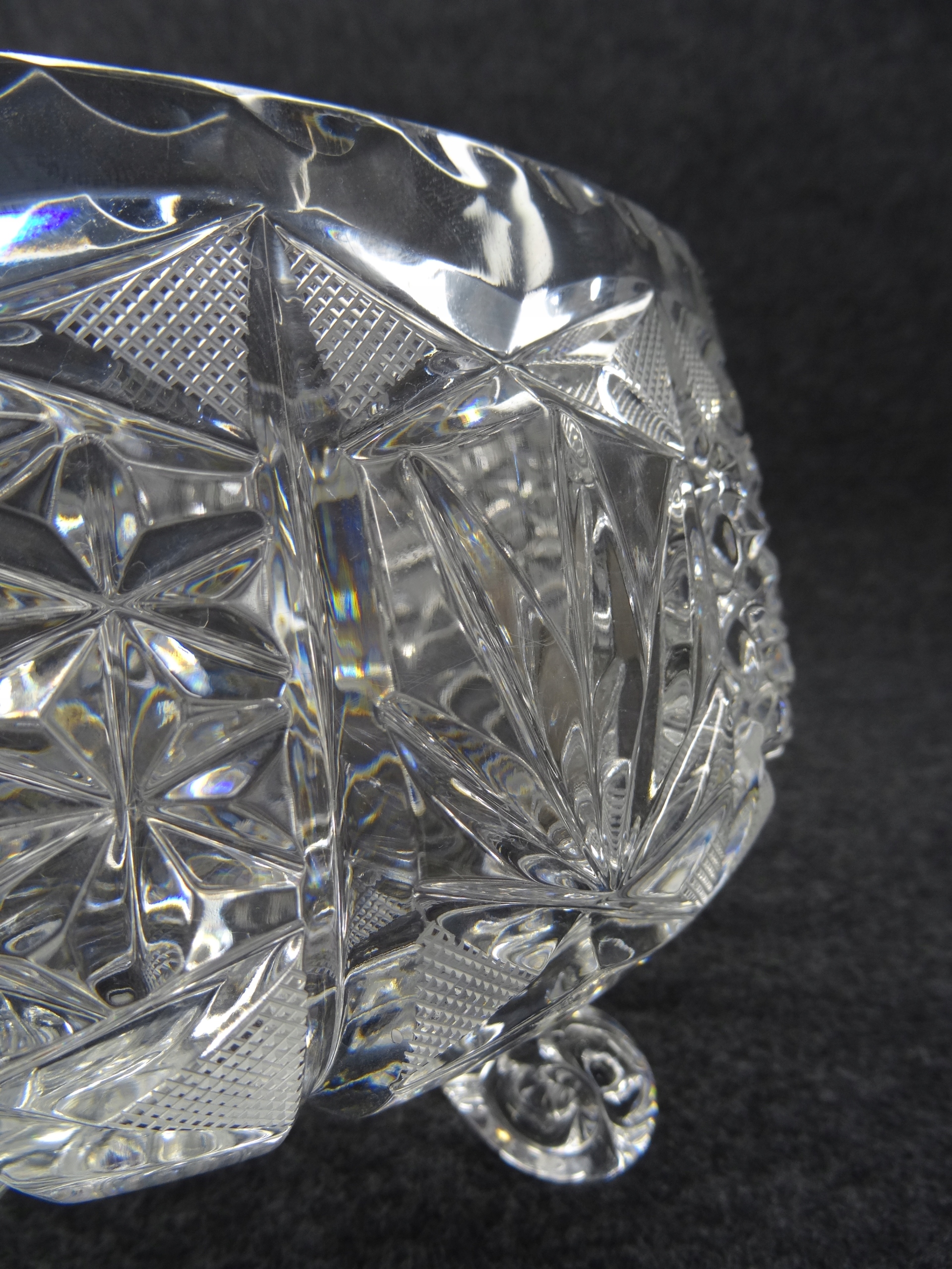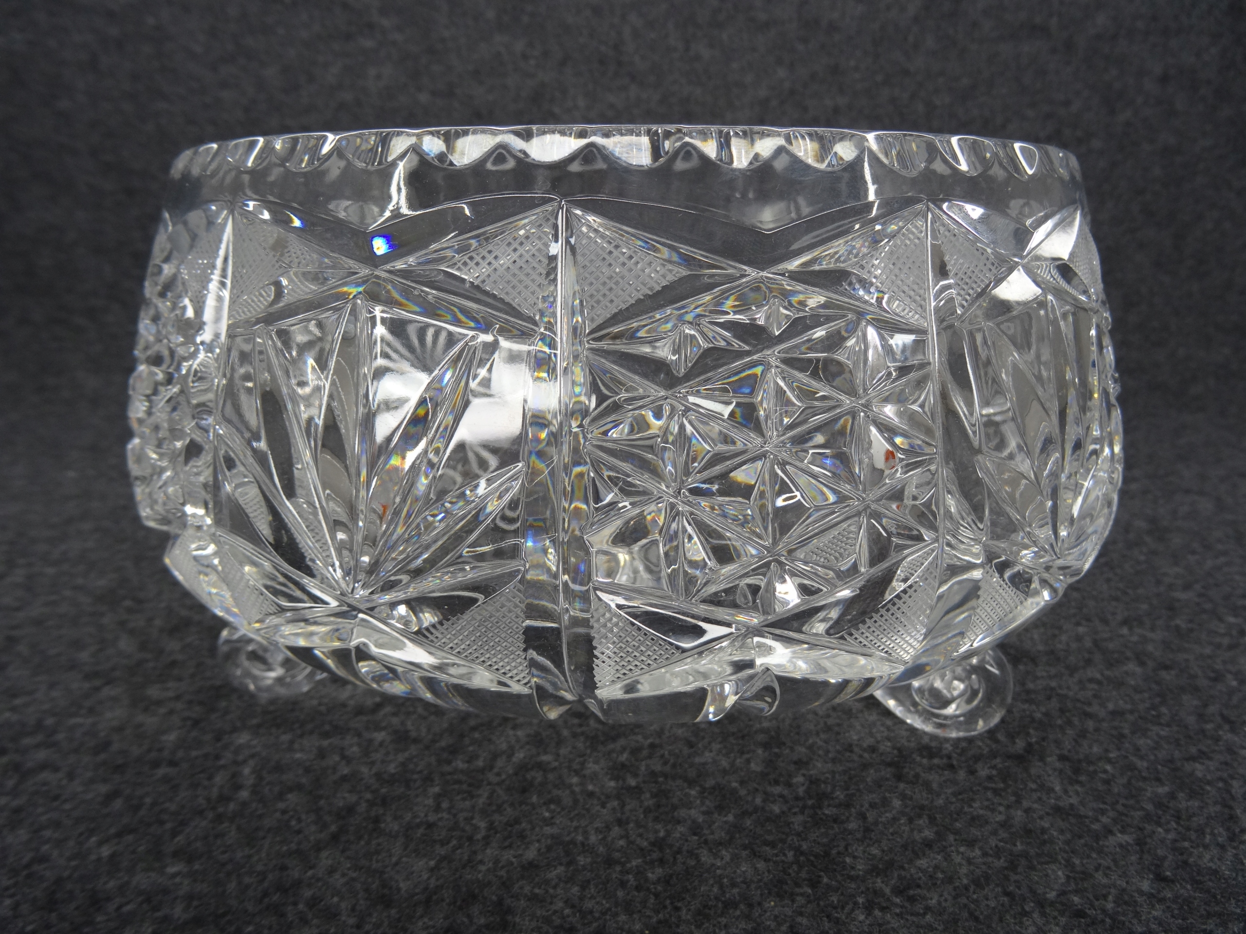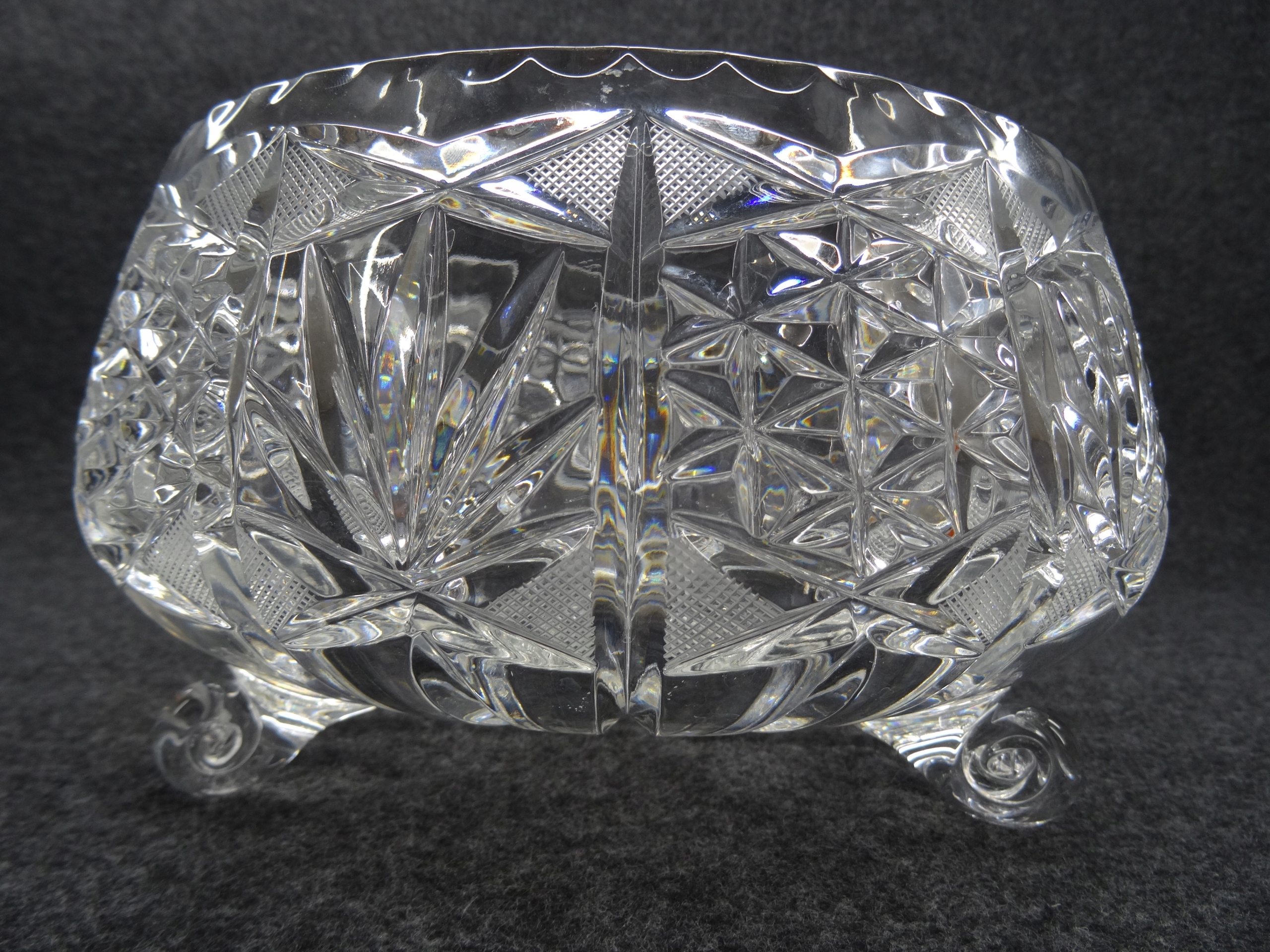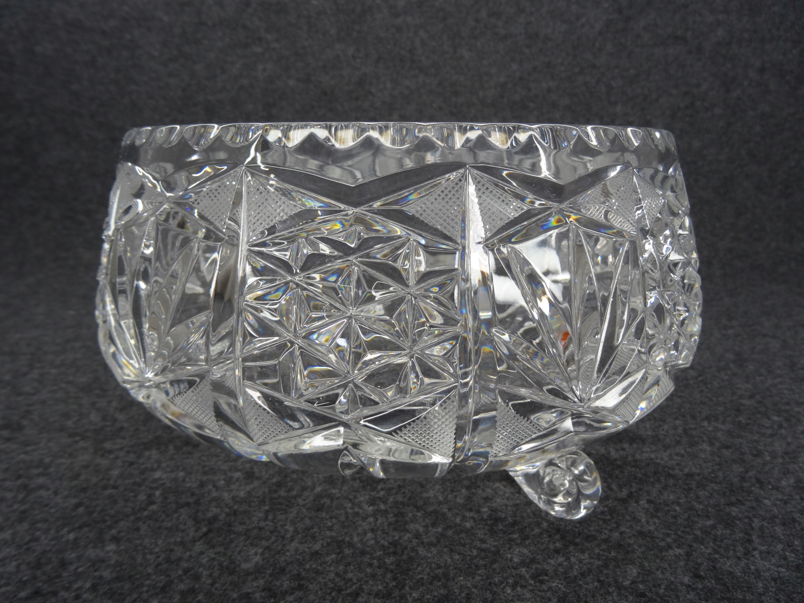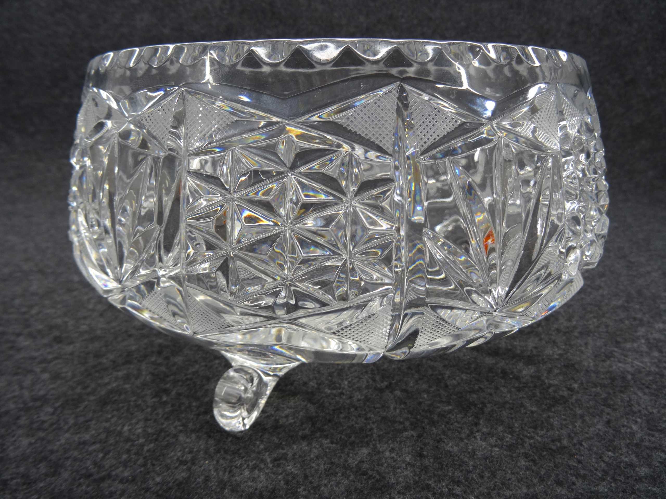 Большая чаша из хрустального стекла, опирающаяся на три ножки.