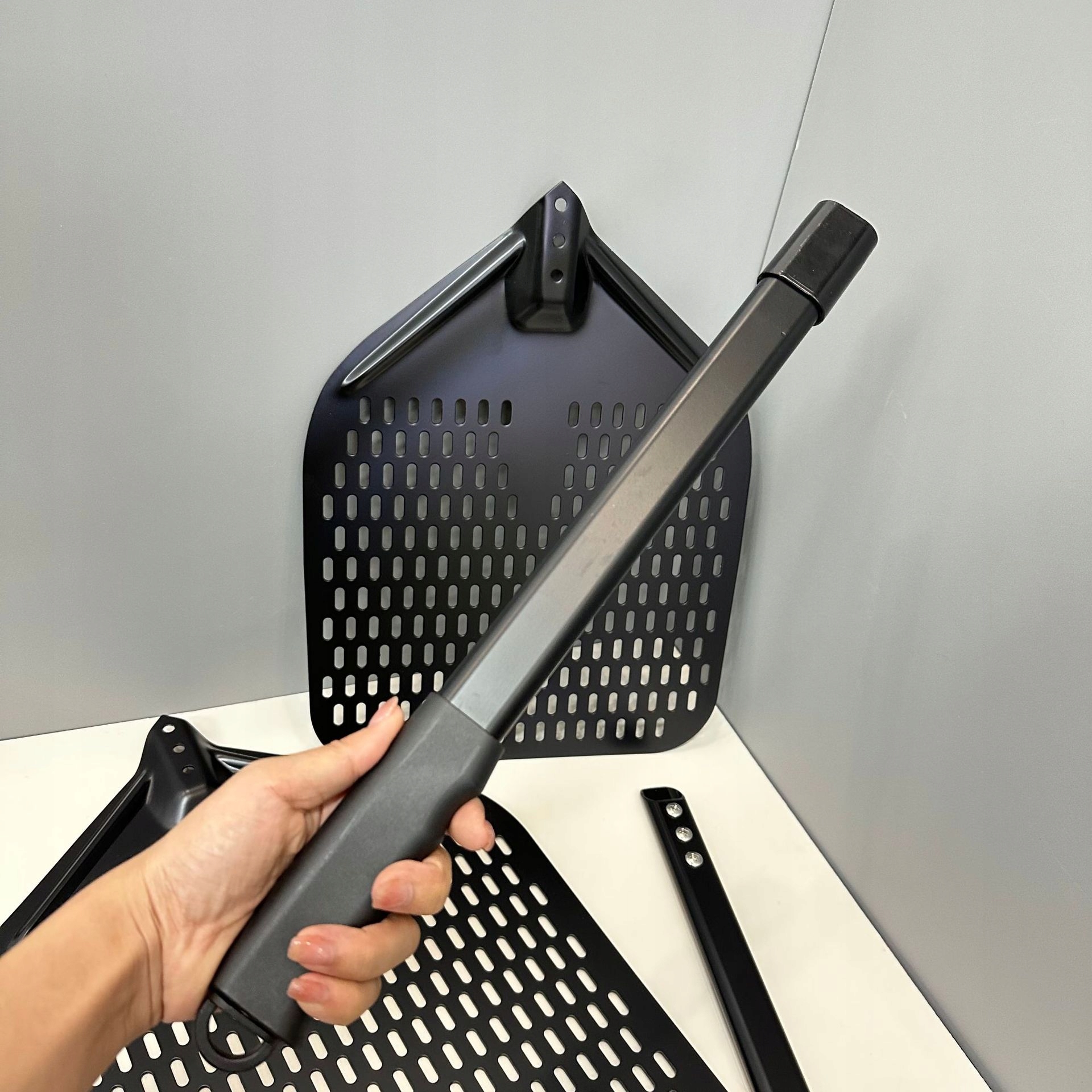 🥪 Перфорированная поверхность: Перфорированная поверхность лопатки для пиццы предотвращает высыпание лишней муки, сохраняя нижнюю часть пиццы хрустящей во время выпечки.