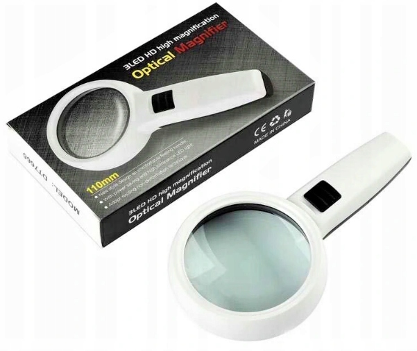 Стеклянная лупа с подсветкой 3xLED