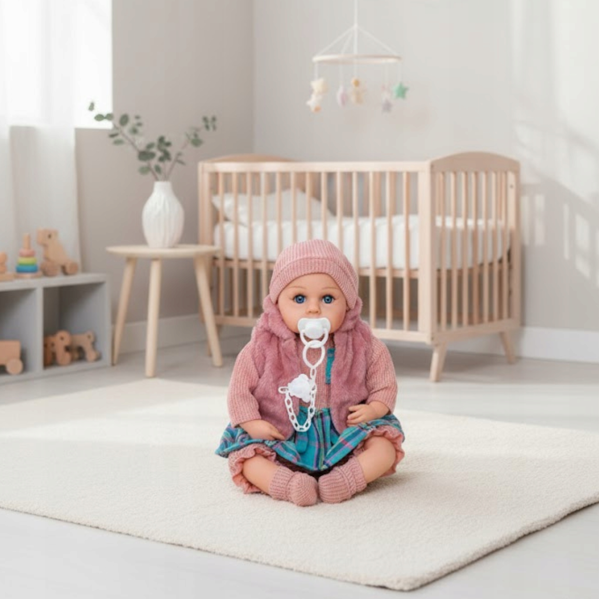 Большая кукла ростом 45 см разговаривает и поет, интерактивная соска и подарочная коробка.