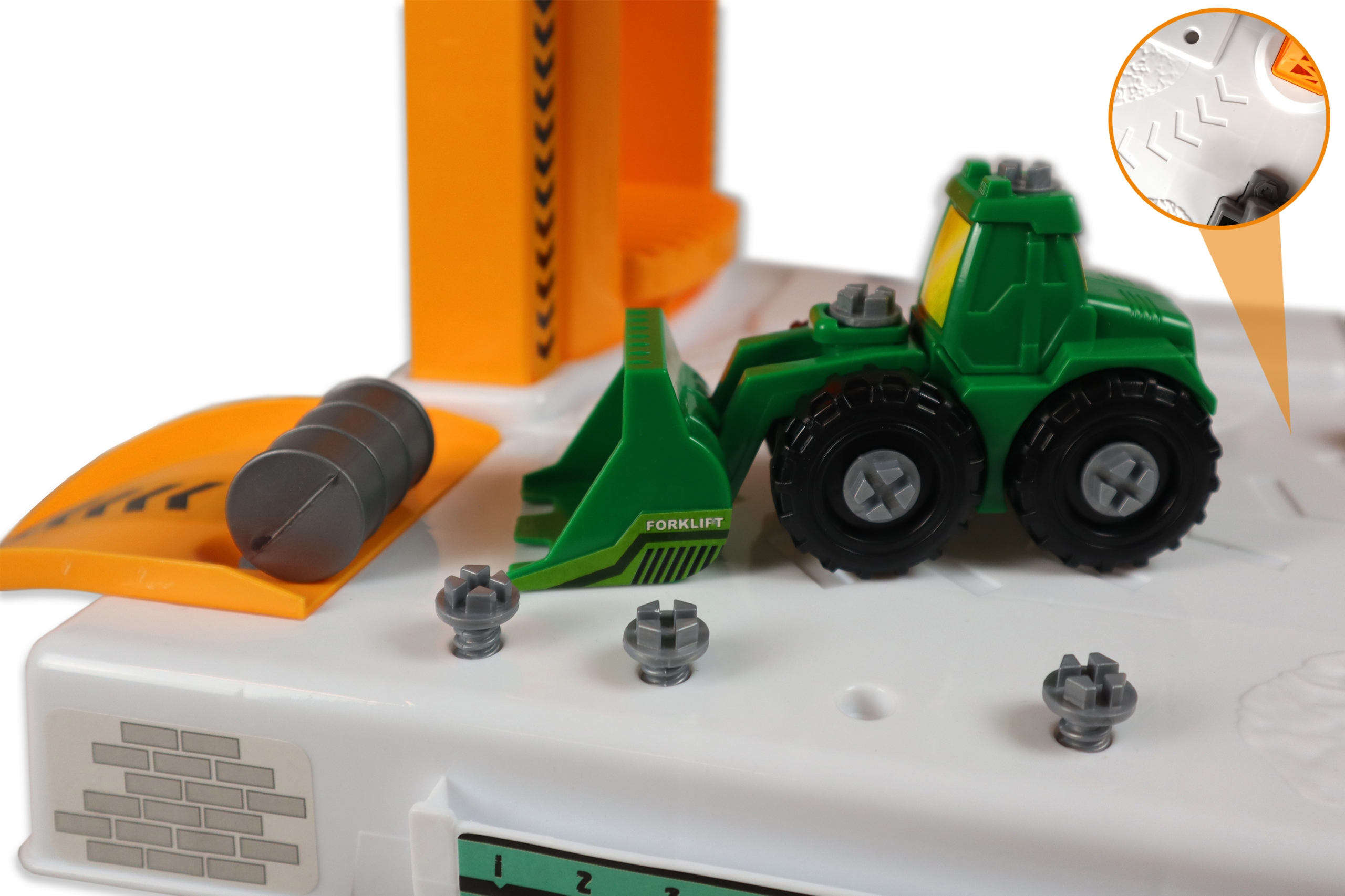 - Необычным дополнением к мастерской является экскаватор, который можно свободно откручивать и скручивать с помощью прилагаемых инструментов.
