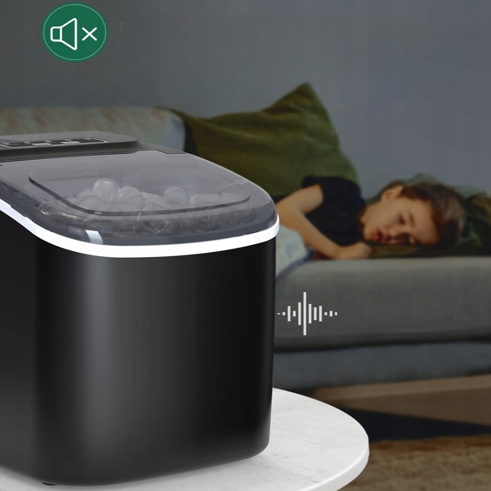 -👁 Прозрачная крышка позволяет отслеживать количество кубиков льда. Датчик автоматически обнаруживает, заполнены ли кубики льда, и останавливает производство, чтобы избежать переполнения.