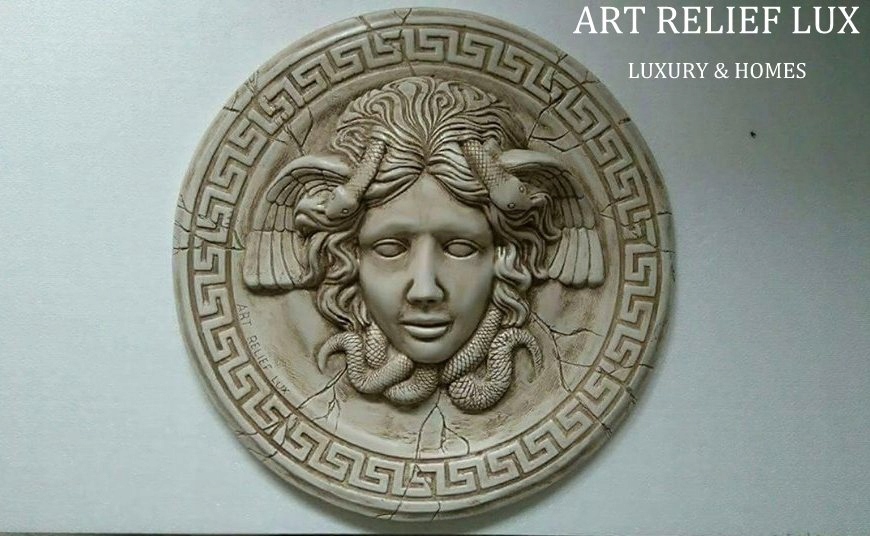 НОВИНКА!!! ЧУДЕСНЫЙ БОЛЬШОЙ ГРЕЧЕСКИЙ БАРЕЛЬЕФ С ЛОГОТИПОМ МЕДУЗА ГОРГОНА VERSACE. АРТЕФАКТ В ЧИСТОМ БЕЛОМ КРАСИВОМ БАРЕЛЬЕФТЕ! ОТДЕЛКА КАМИНА ГОСТИНОЙ, ВАННОЙ КОМНАТЫ, РЕСТОРАНА, ОТЕЛЯ... РУЧНАЯ РАБОТА!!! .