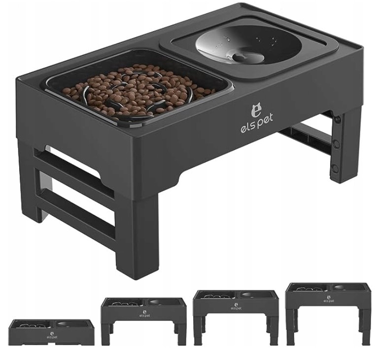 Двойная МИСКА ДЛЯ СОБАКИ, регулируемая по высоте, ЗАМЕДЛЯЮЩАЯ ЕДУ и защищенная от брызг, НА РЕГУЛИРУЕМОЙ ПОДСТАВКЕ