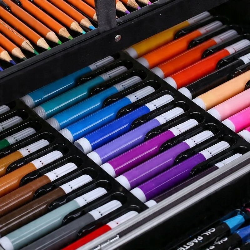 Все эти богатства аккуратно размещены в твердом пластиковом чемодане, что делает транспортировку набора легкой и удобной. Оснащенный практической ручкой, чемодан позволяет вам удобно перемещаться везде, где хочет выразить творческую душу. Это идеальное решение для тех, кто ценит порядок и эффективность в творческом процессе