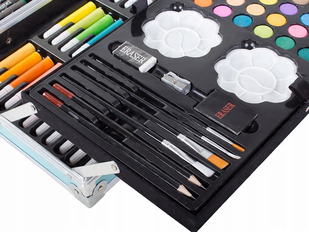Наш художественный набор - это не только игрушка для детей - - это ворота для бесконечных творческих возможностей! Благодаря ему дети могут развивать свое воображение и изучить творческое мышление чрезвычайно вдохновляющим способом. Кроме того, изобилие кистей, температуры, карандашей и ластика для стирания обеспечивает полный набор для выражения через искусство