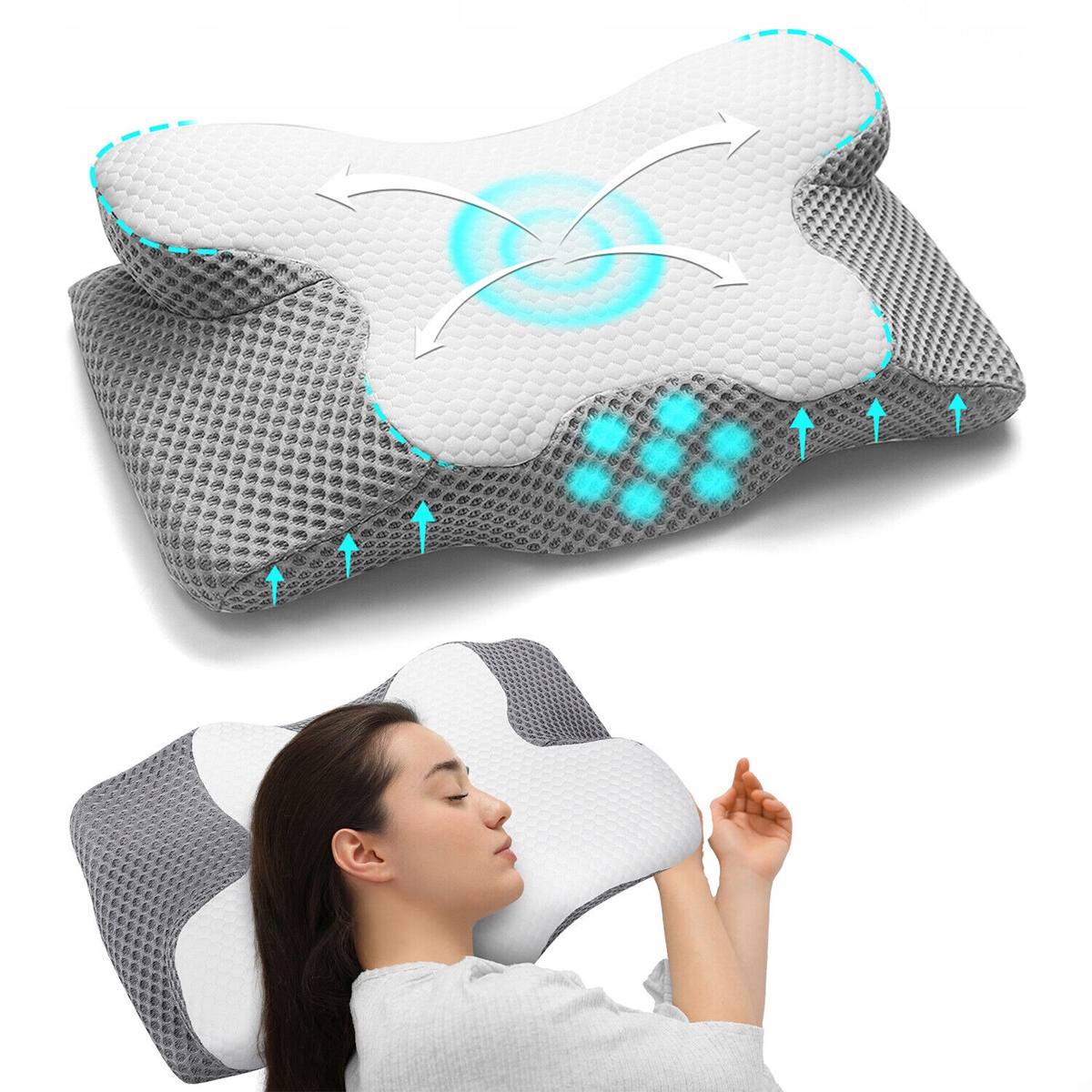 Подушка под шеей имеет уникальную форму бабочки, многие исключительно профилированные области держат шею на правильной высоте, эффективно успокаивает дискомфорт плеч и шеи и хорошо поддерживает головы и шейные вены. Убедитесь, что ваша голова находится в удобном месте для сна. Советы: Вначале вы не привыкли к этому, поэтому мы рекомендуем дать себе 1-2 недели, чтобы привыкнуть