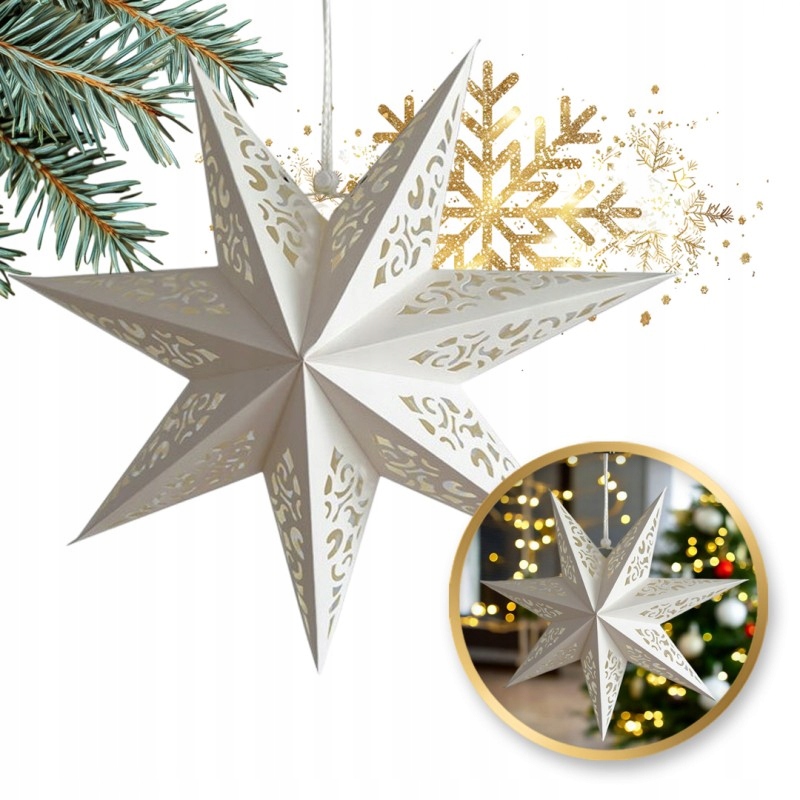 ВЕЛИКА ПАПЕРОВА ЗІРКА РІЗДВЯНА АЖУРНА біла 35 см 3D ВІТРАЖ