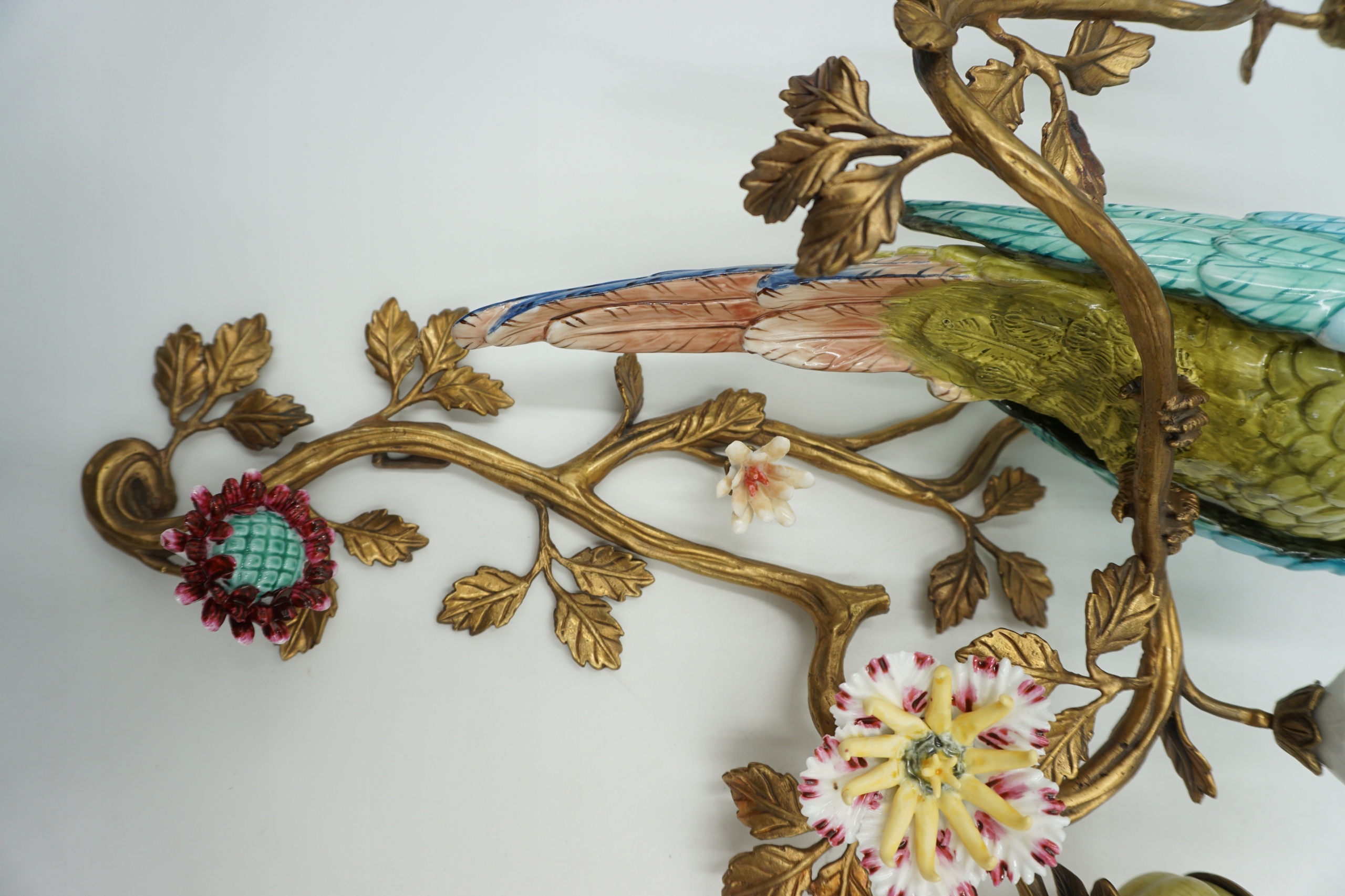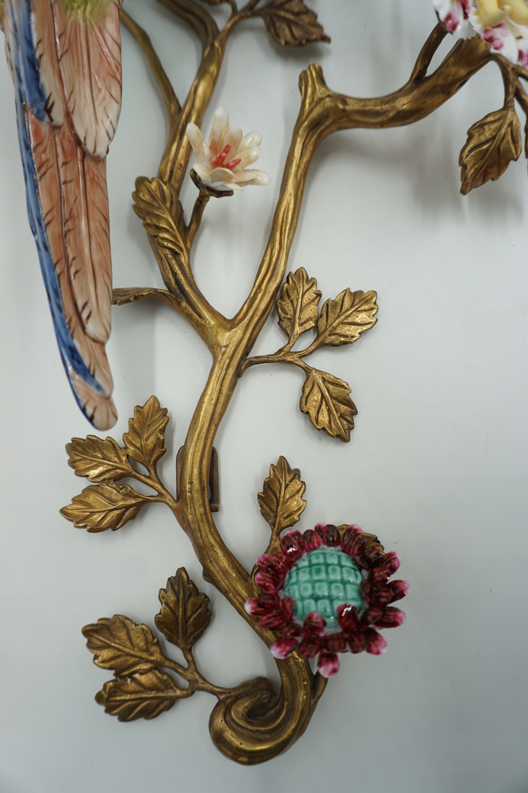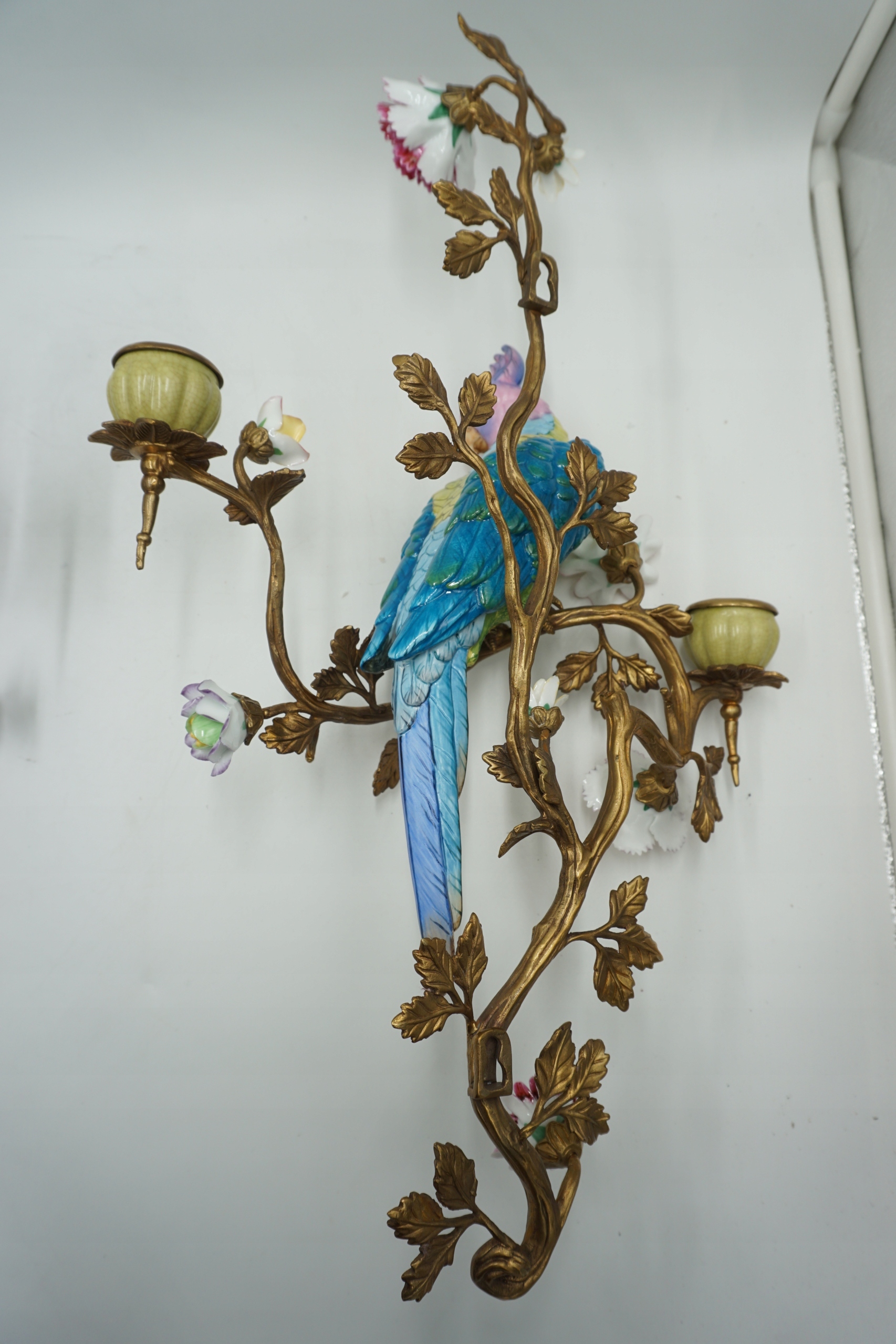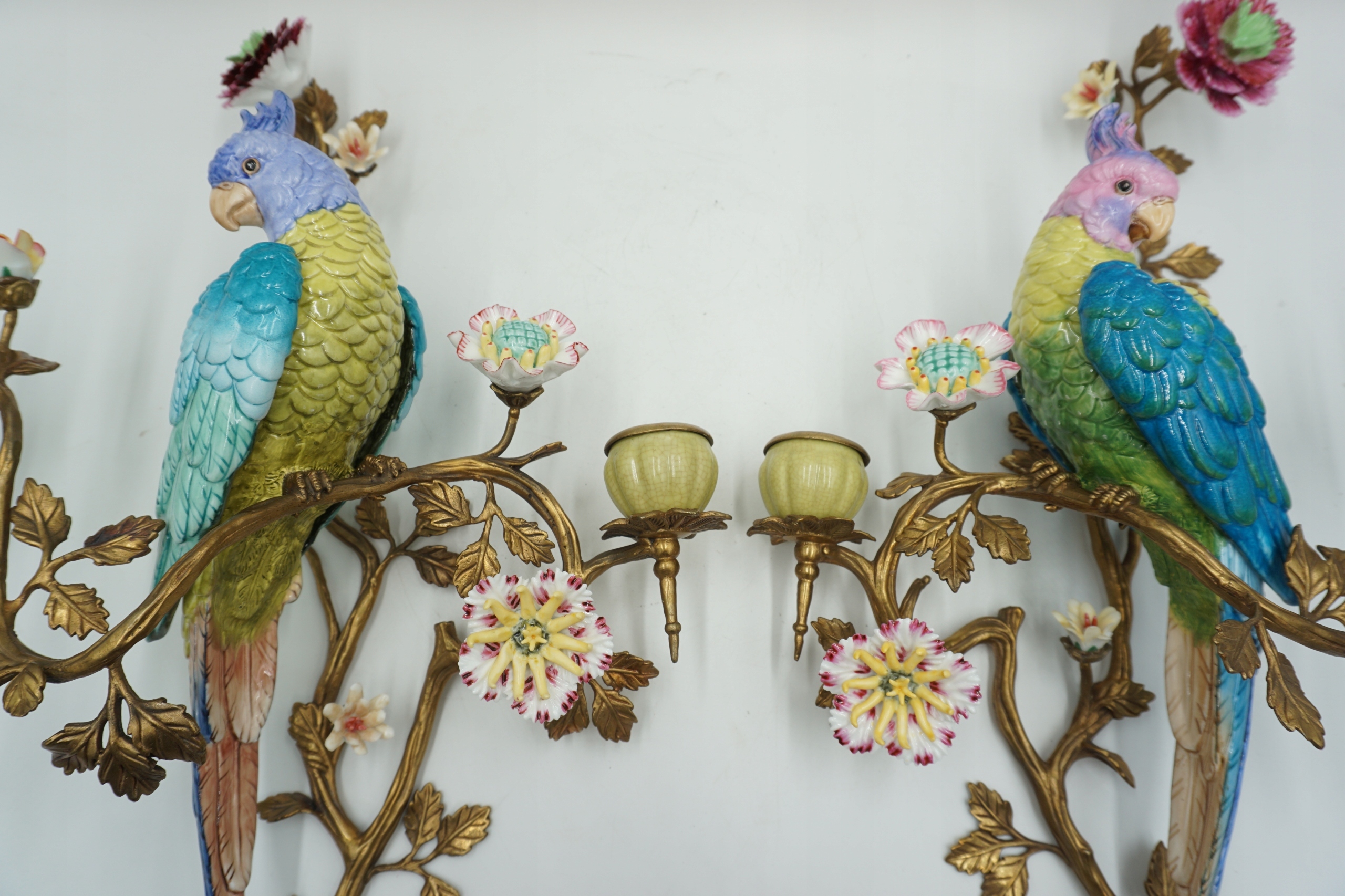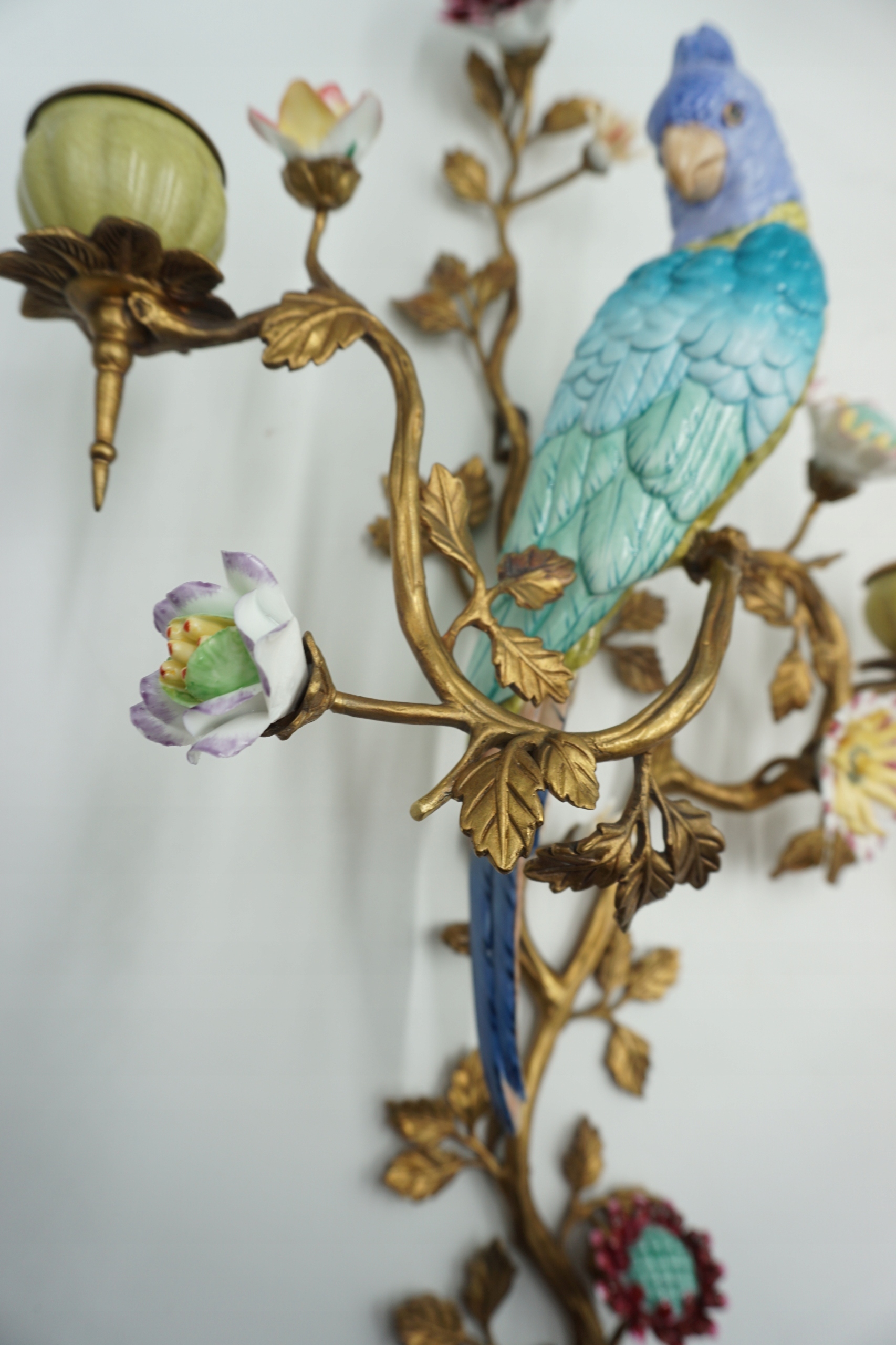 Большая пара настенных ламп из попугаев фарфоровых фарфоровых цветов с коричневыми.