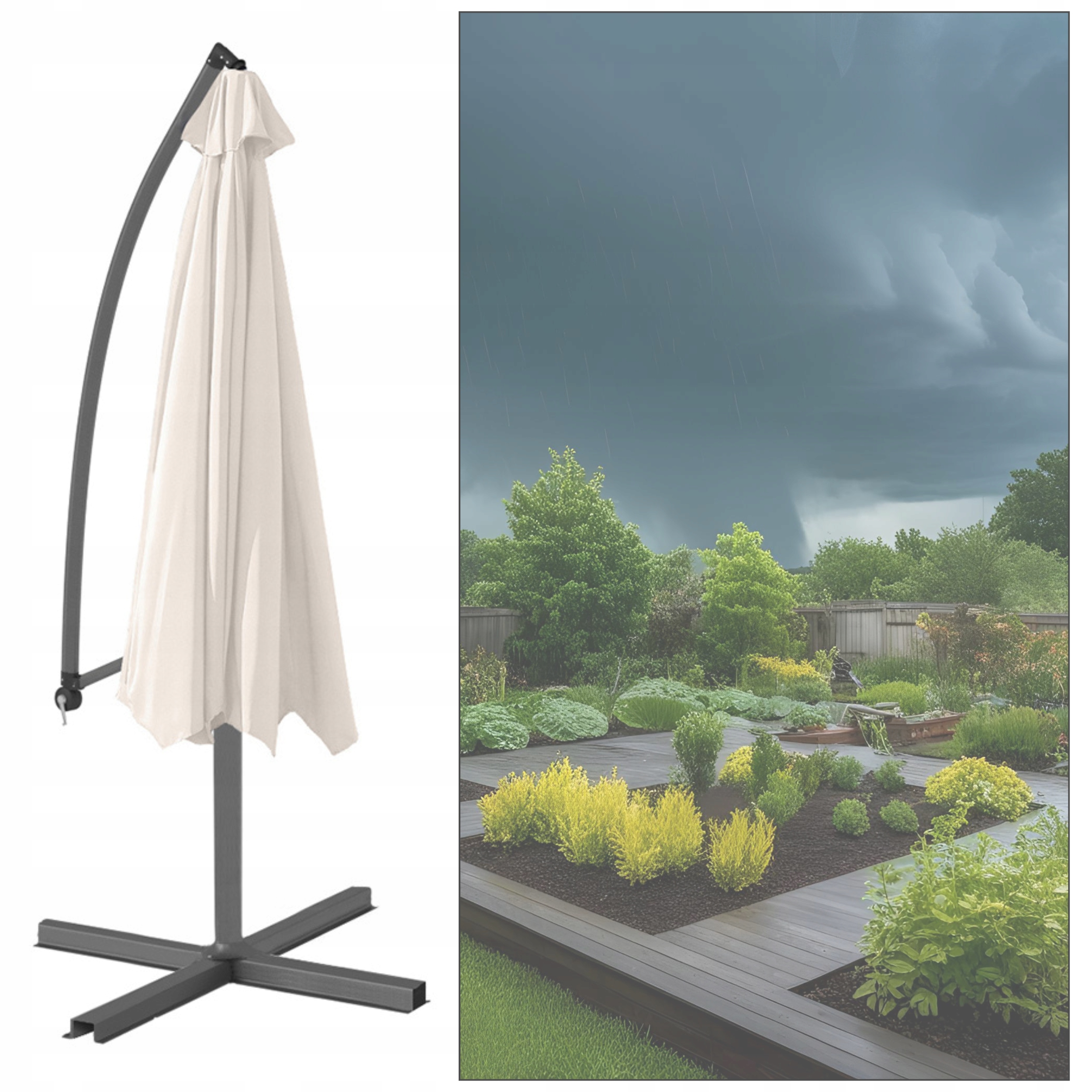 Большой зонт с 8-баш-садовой кремовой террасой 350 x 250 см