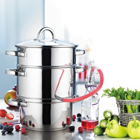 Соковыжималка дает вам возможность легко сделать домашний сок из ваших любимых фруктов или овощей. Мы получаем пастеризованный сок, поэтому мы можем легко хранить его в течение более длительного периода времени. Соковыжималка Kinghoff 8L позволит вам приготовить вкусный сок максимум через 2 часа. Эта модель соковыжималки также адаптирована для использования ее на индукционных печи. Тройное акукторическое дно обеспечит многолетнее удовлетворение от продукта. Соковыжималка изготовлена из нержавеющей стали 18/10.