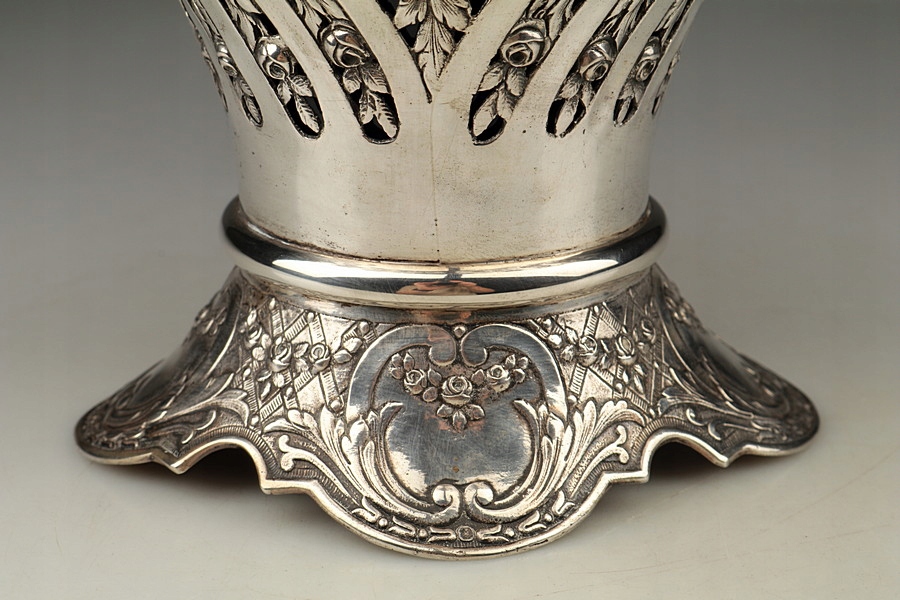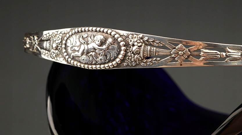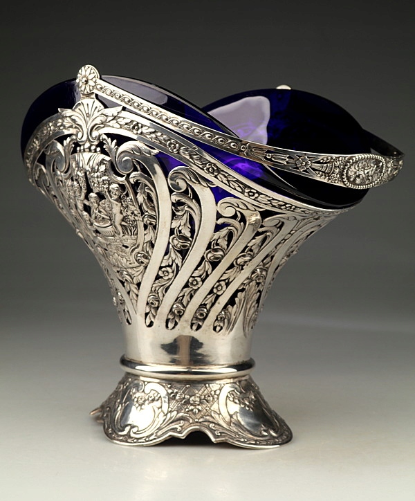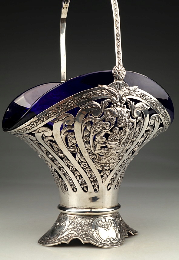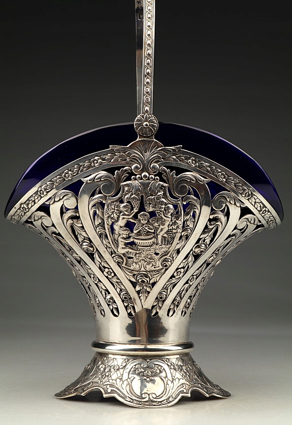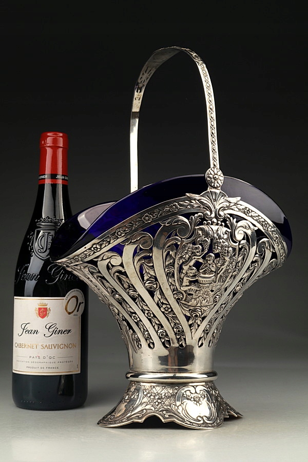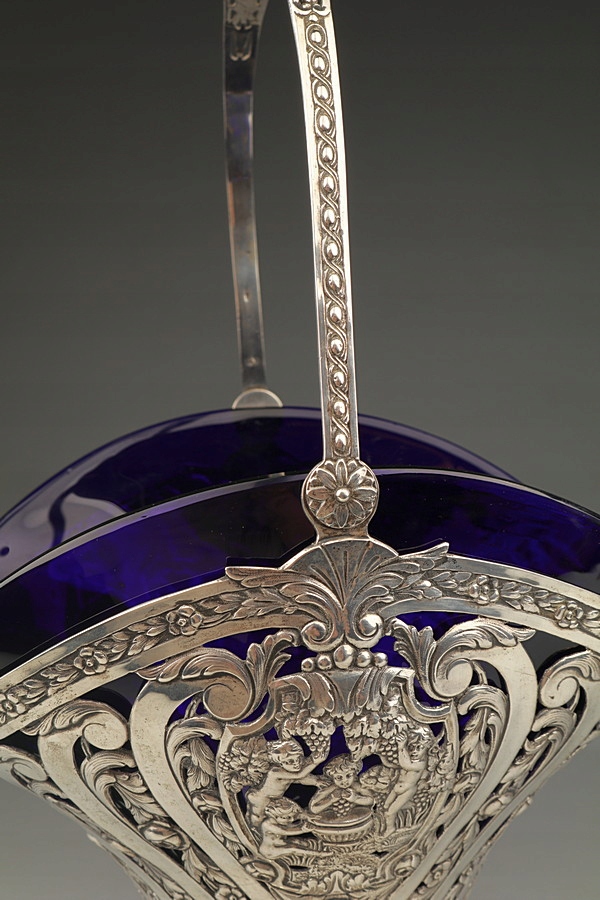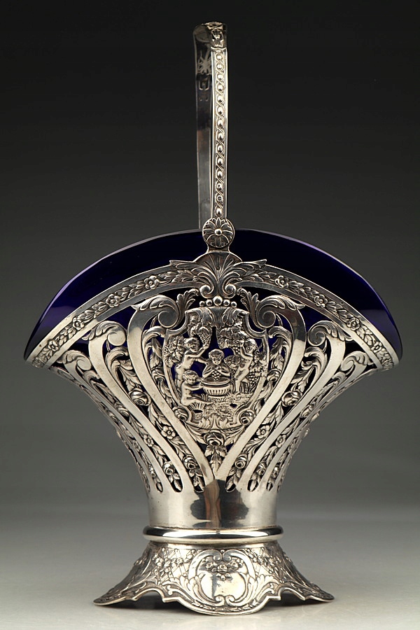 Большая серебряная патера (корзина) со стеклянной вставкой.