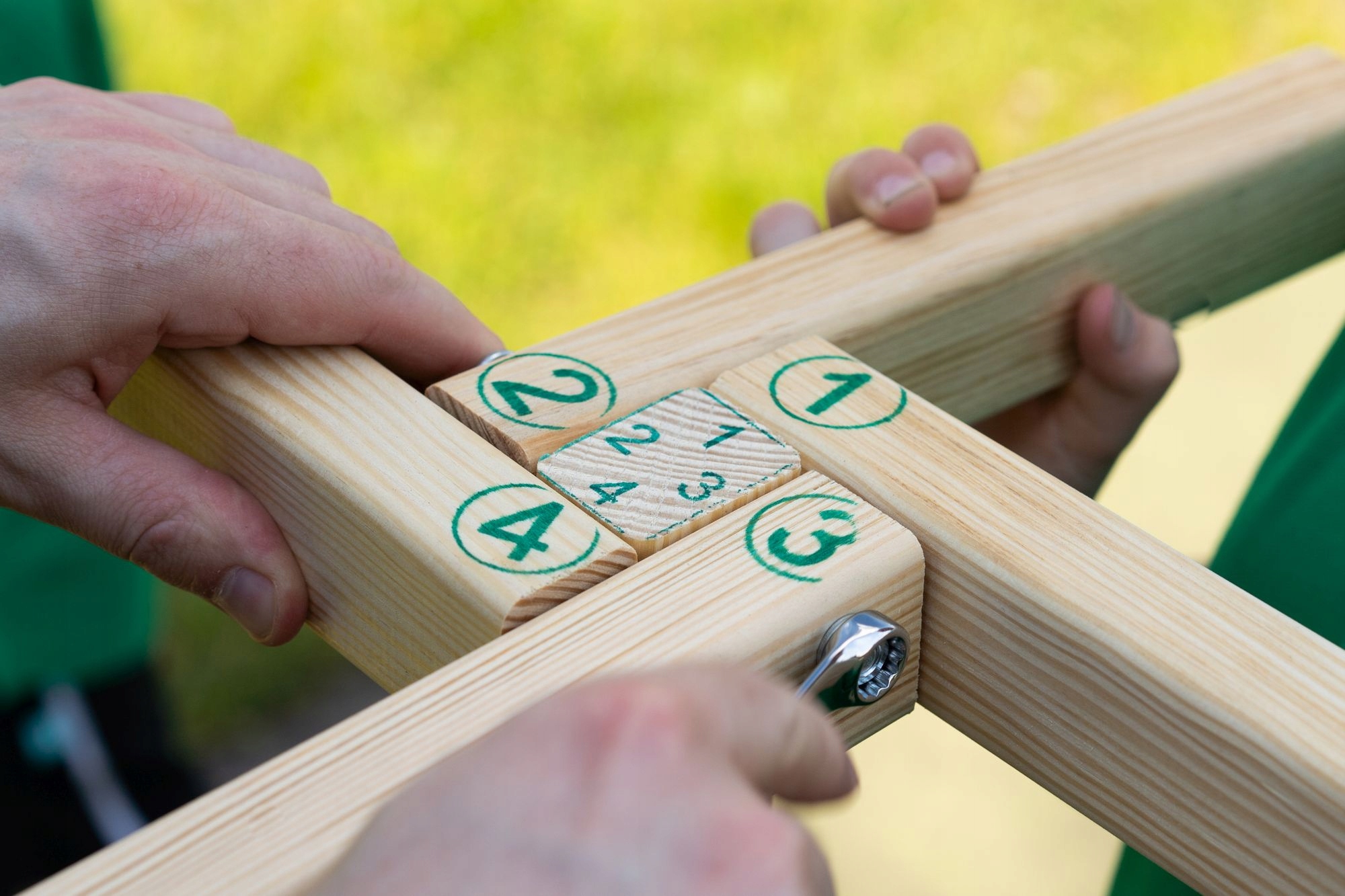Кроме того, в комплект входят ключ и 4 винта. Благодаря простой конструкции и краткой инструкции, входящей в комплект, вы легко сможете собрать все препятствие. Вовлеките ребенка в этот процесс.