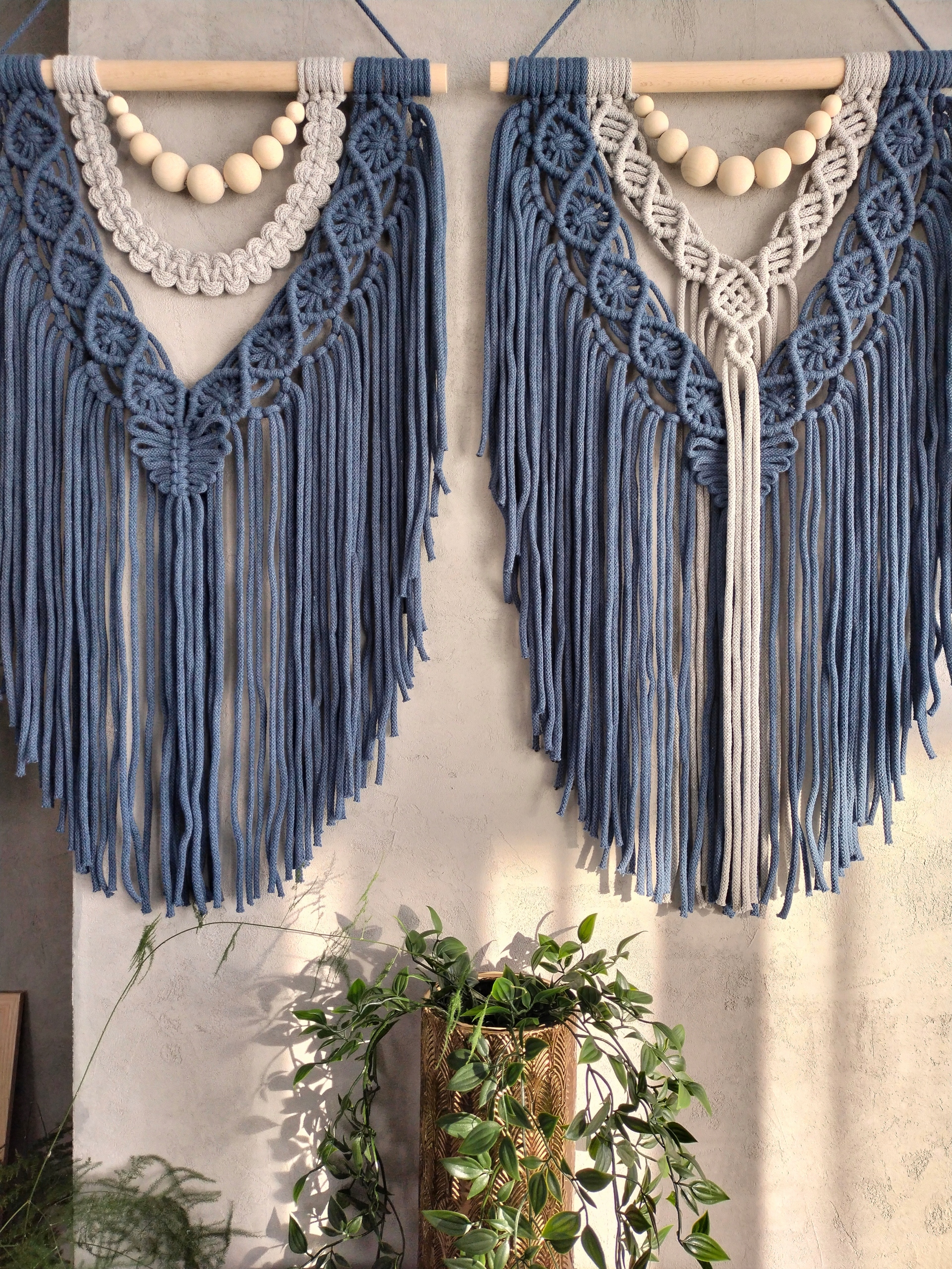 Велика підвісна прикраса МАКРАМЕ з нитки, модного блакитного та темно-синього бісеру