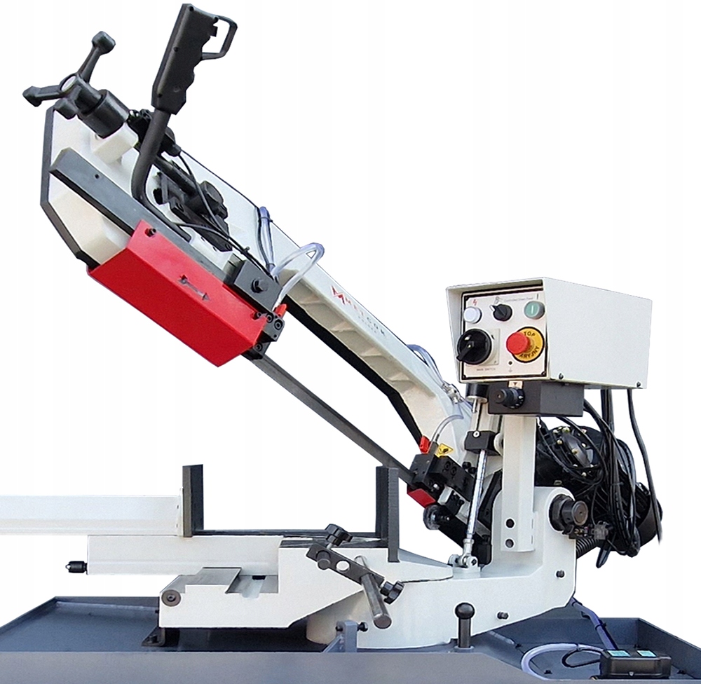 В модели 2023 года основание и рычаг резака были значительно усилены. Он был изготовлен из очень массивного и толстого, однородного отлитого серого железа. Тиски расположены в регулируемой станине. Режущая лента шириной 27 мм позволит использовать весь потенциал станка при выполнении многосерийных резов конструкционной, нержавеющей и инструментальной стали.