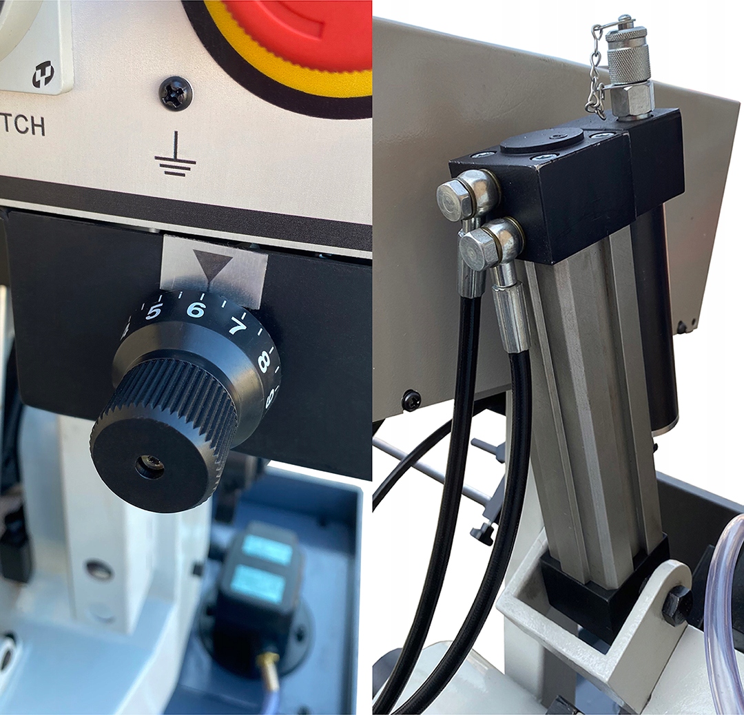 Технологически продвинутый гидравлический цилиндр делает резку гладкой. Подача при резке самотечная основана на принципе течения масла в двухкамерном гидроцилиндре. Соответствующая скорость опускания рычага достигается за счет использования электропотенциометра, который точно регулирует скорость опускания рычага.