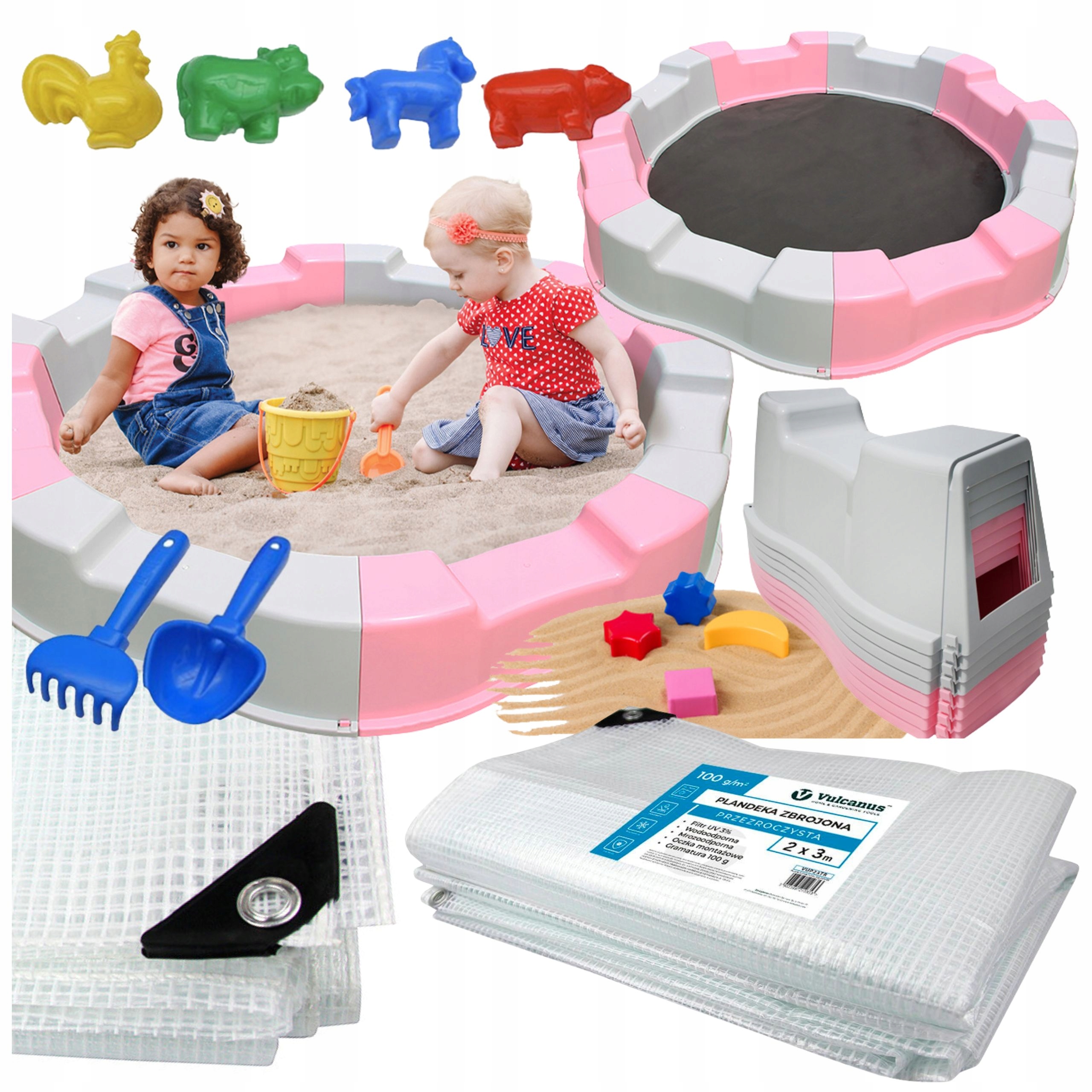🌟 Песочница складная детская, розово-серая La Veranda + дно + игрушки для песка + брезент 2х3м 🌟