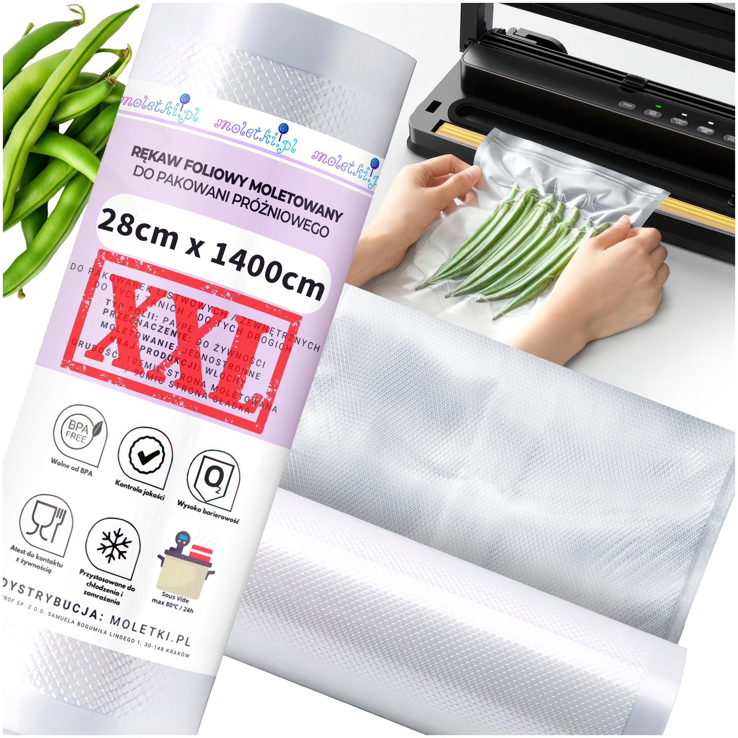 Наши накатные пленки благодаря специальной тисненой структуре пленки разработаны для использования с упаковочными машинами и вакуумными упаковщиками.