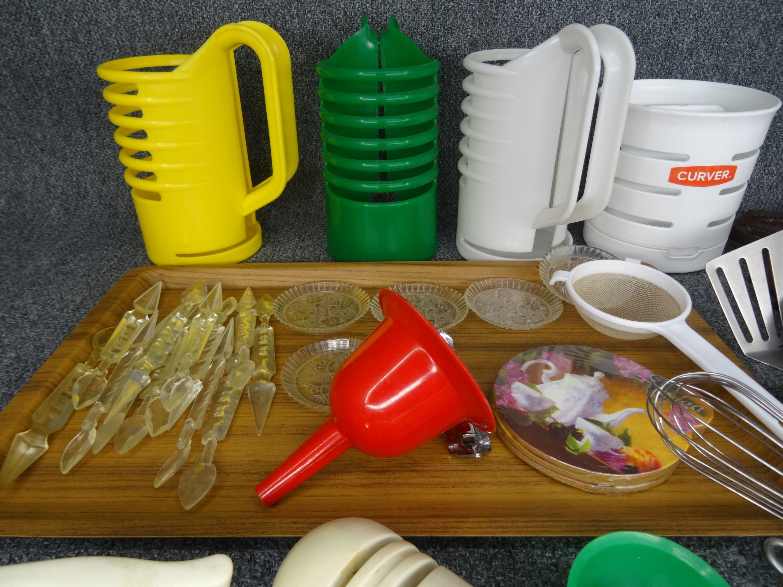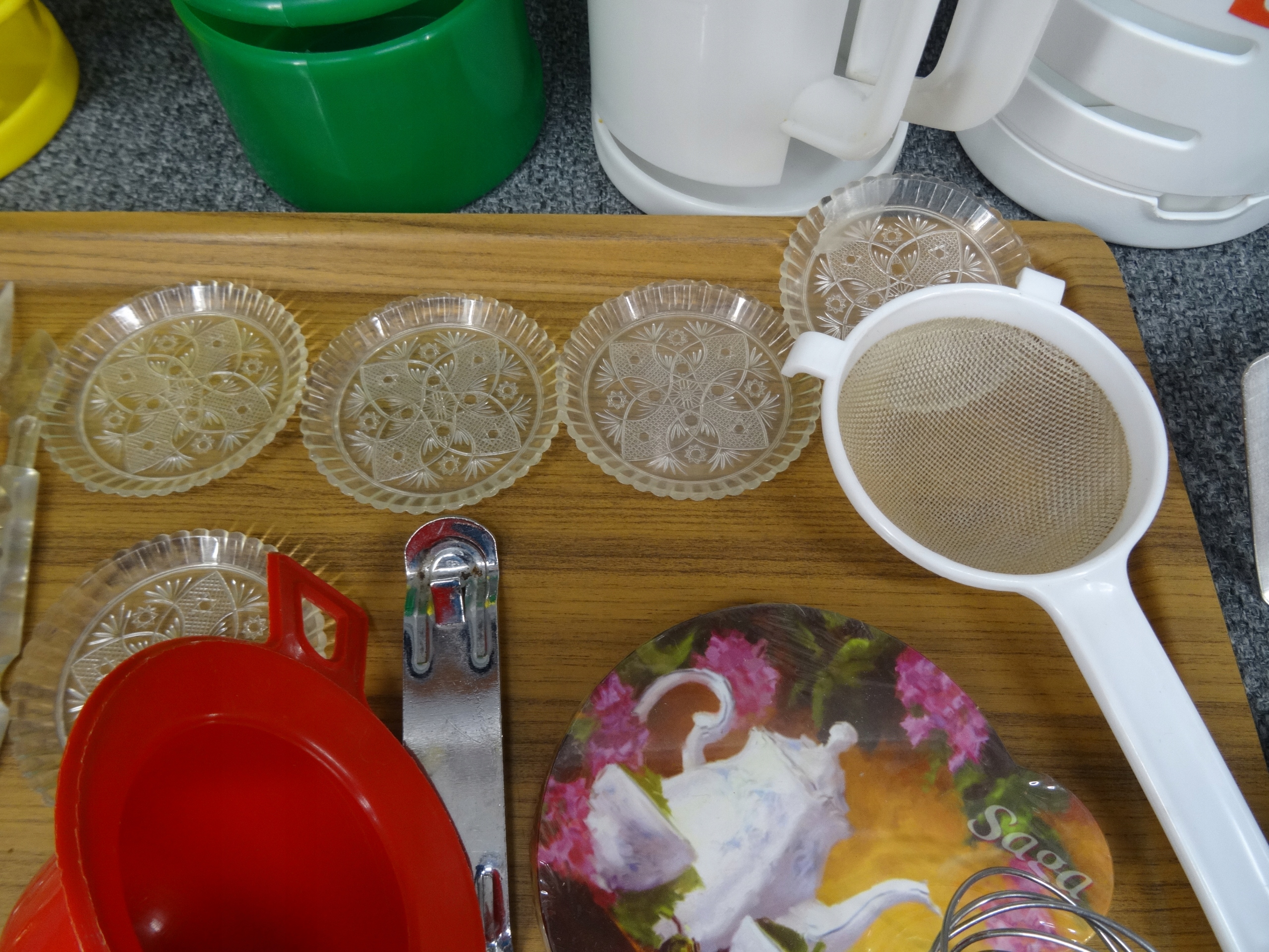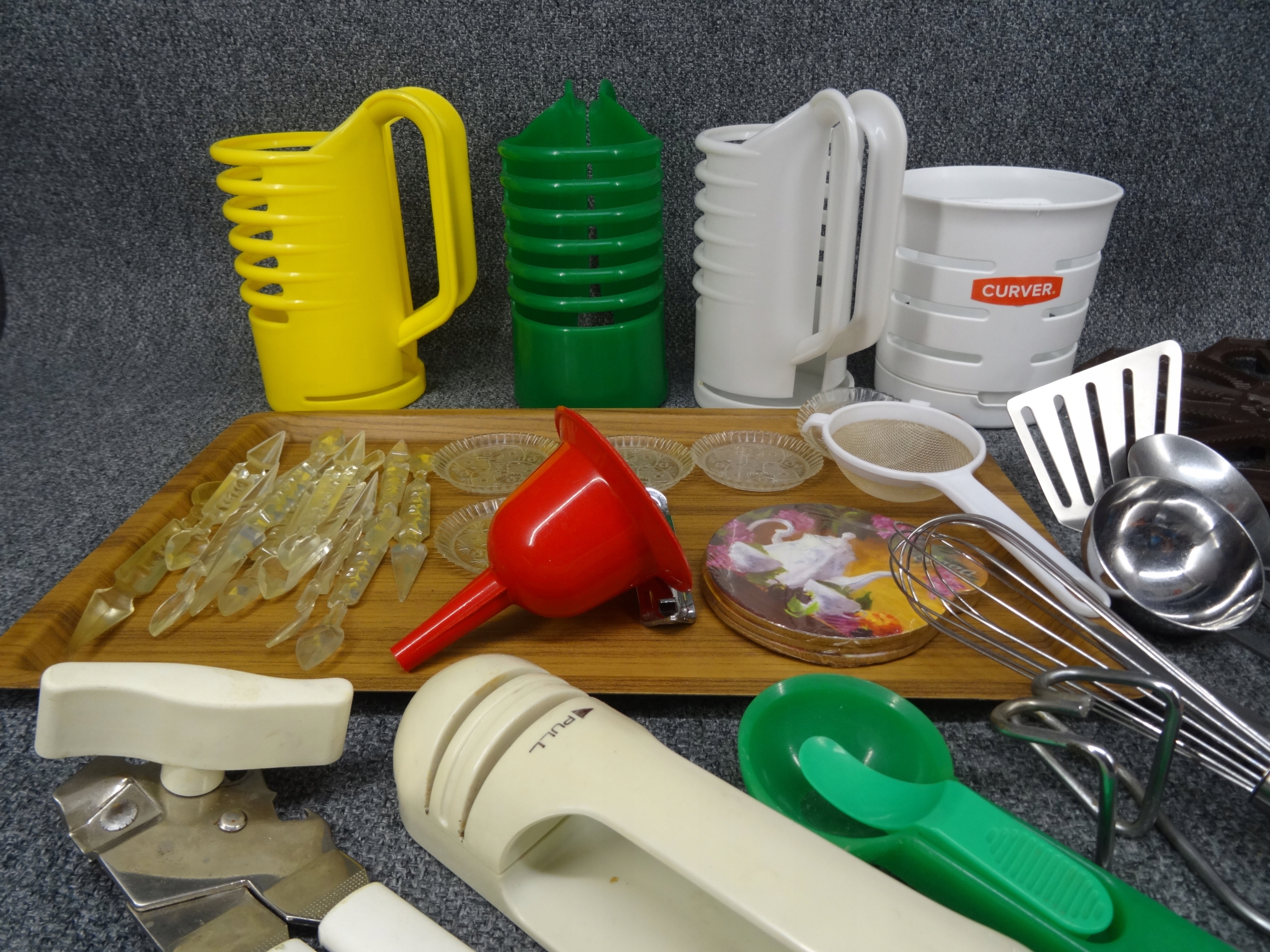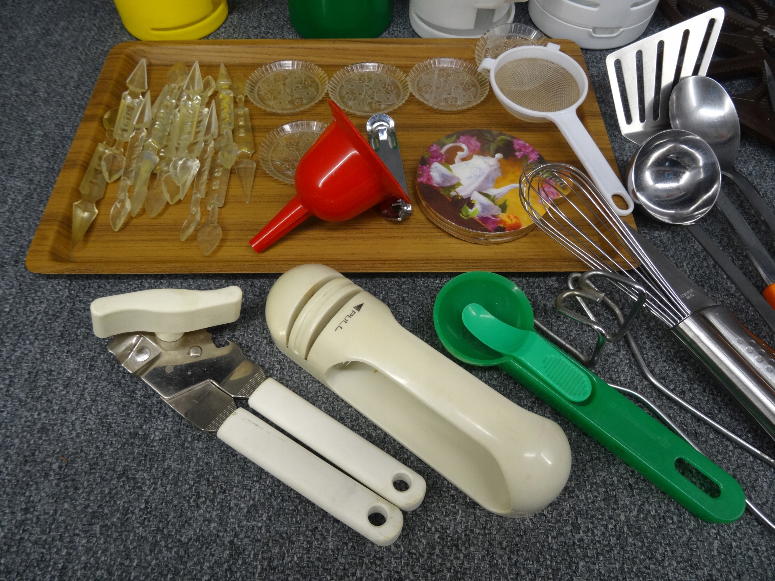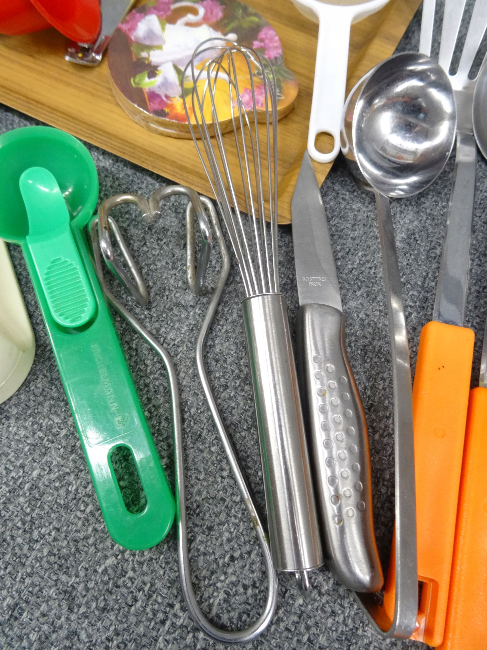 Большой набор различных бытовых приборов: нож, ложка, поднос, консервное открытие, точилка для ножа, кольца, маленькая ситечка, воронка, основание для белья, дренада для искусства, небольшие тарелки, мороженое, ручки для бутылок, например. Для масла, зубочистка. Объекты в основном в очень хорошем и хорошем состоянии с небольшими признаками использования. Состояние, как на фотографиях.