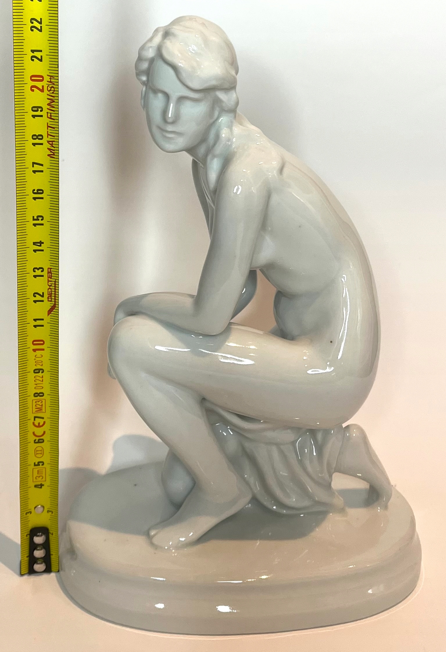 Большая фарфоровая статуэтка обнаженной женщины Zsolnay, Венгрия, винтаж 1960-х годов