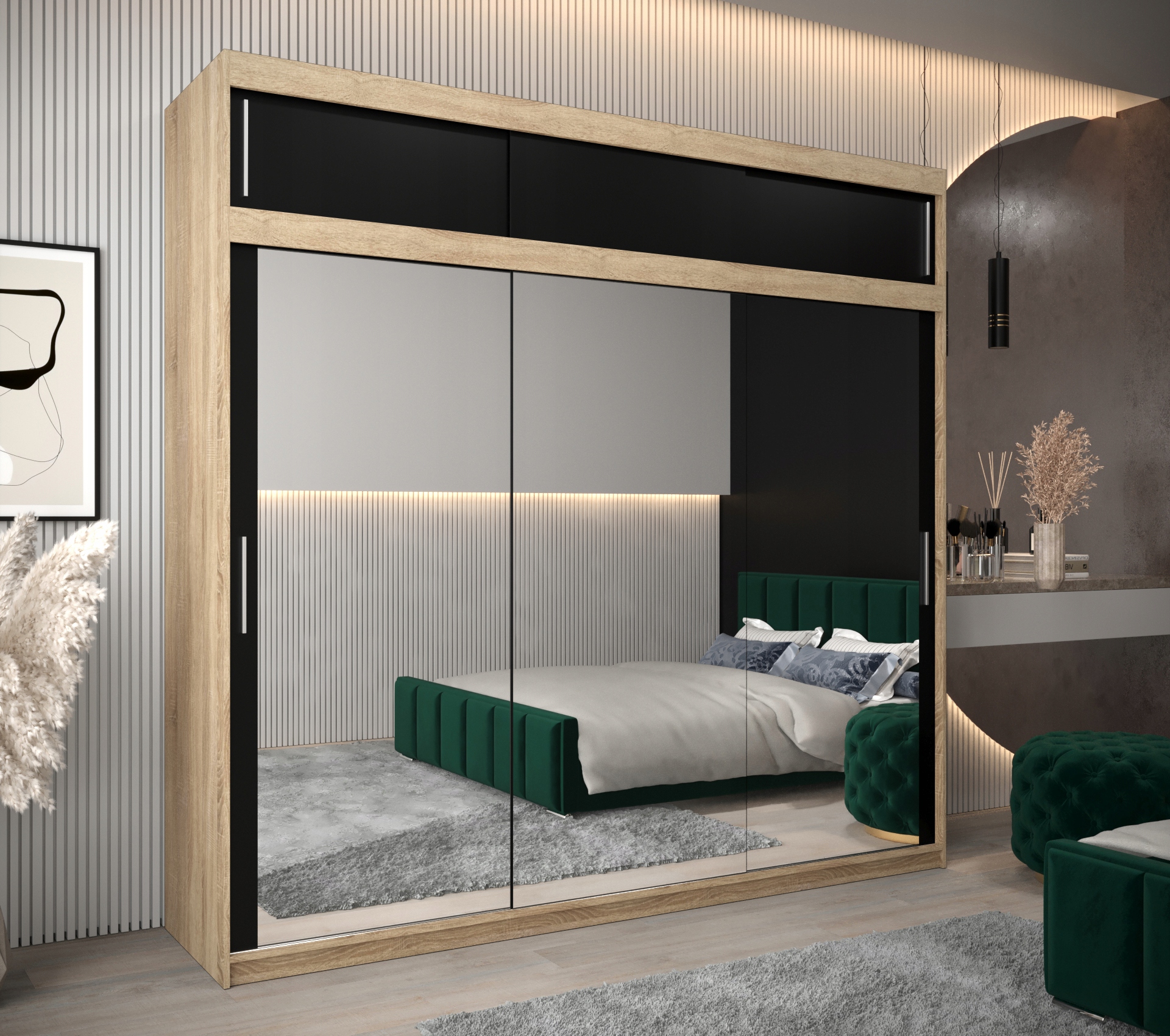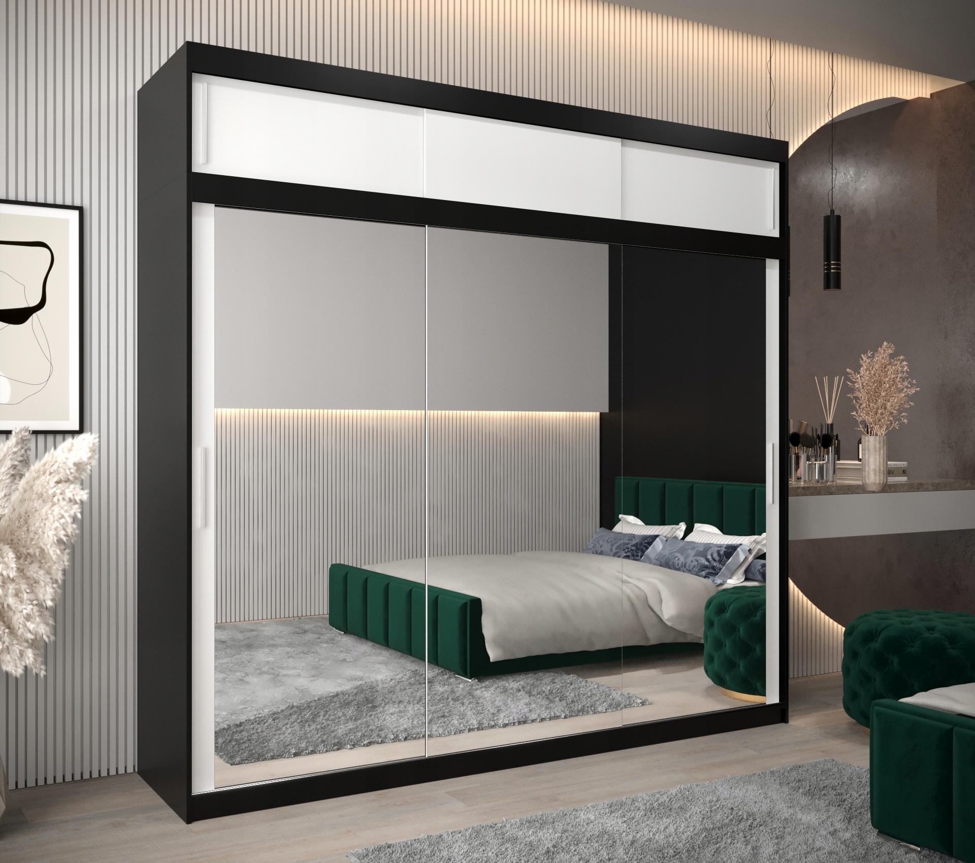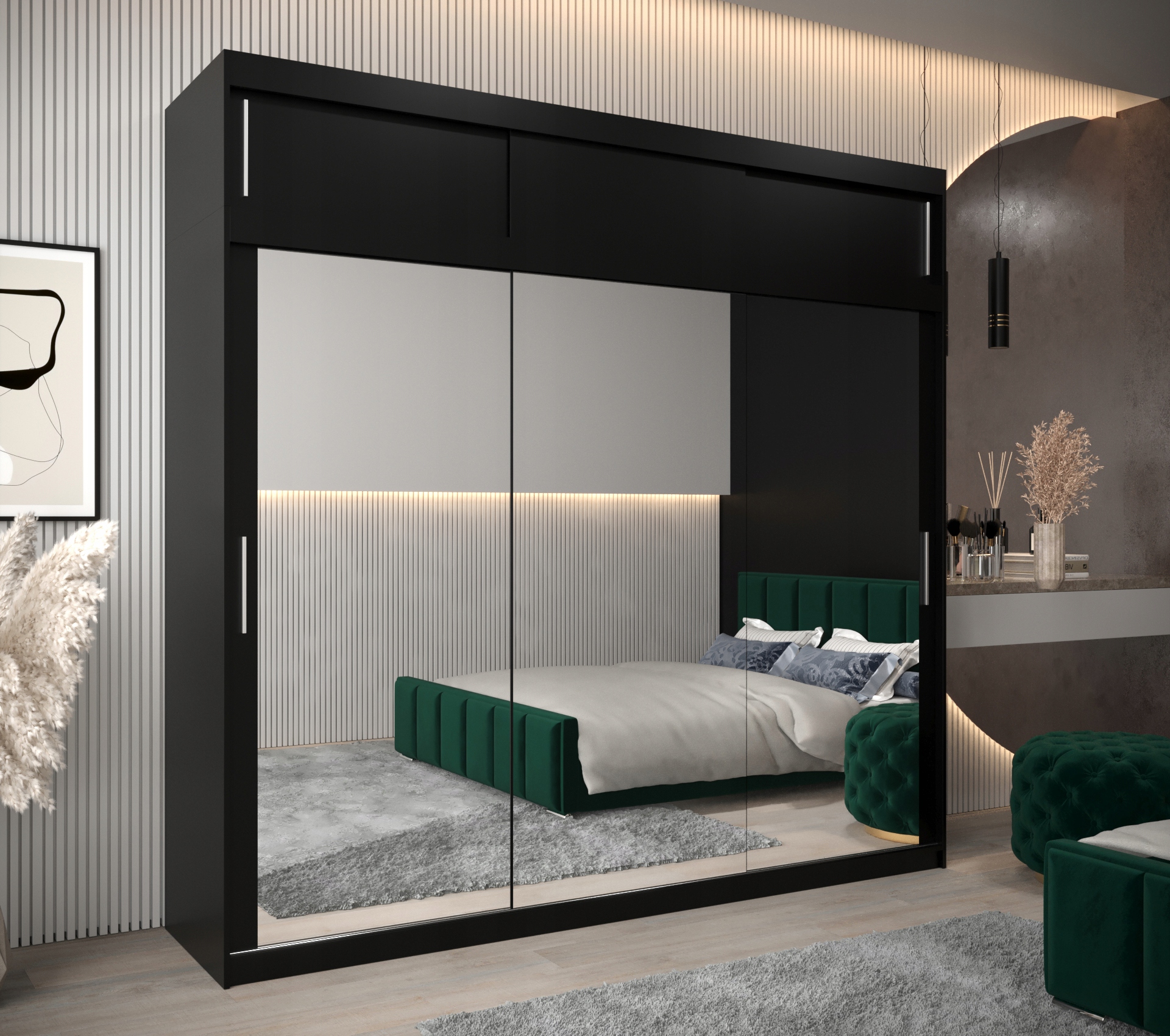 Велика шафа-купе, чорний, Т3, 250 см, з надставкою