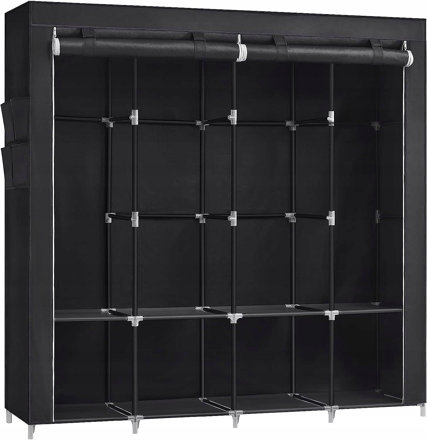 ВЕЛИКА ШАФА З ТКАНИННИМИ ПОЛИЦЯМИ НА ЗАМКУ ЧОРНИЙ 167см