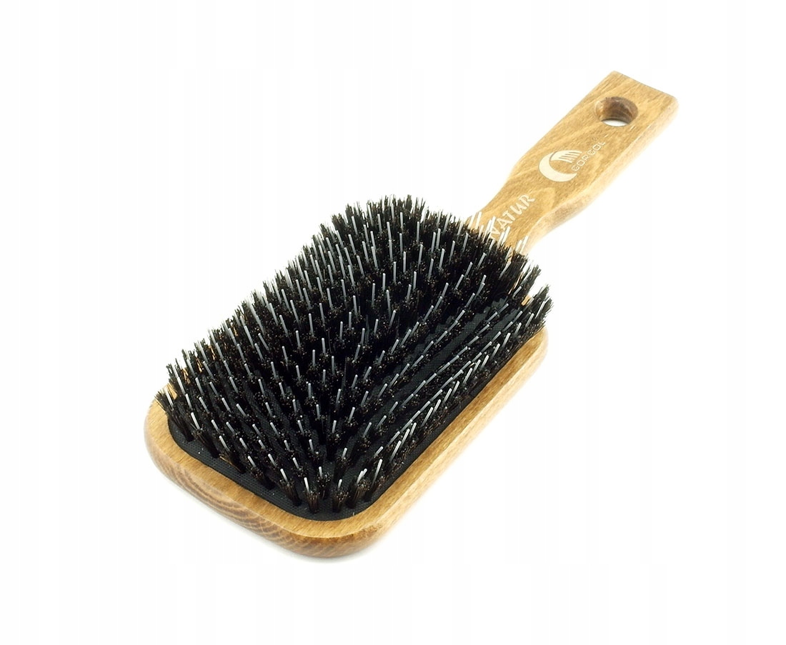 Щётки из кабаньей щетины рекомендуются для всех типов волос, особенно для поврежденных и сухих. Натуральная щетина прекрасно распределяет кожный жир по всей длине волос, придавая им блеск, закрывая кутикулы волос, разглаживая их и придавая объем. Волосы становятся блестящими и приподнимаются у корней. Кабаньи щетинки позволяют расчесывать волосы, не повреждая их структуру, и предотвращают расслаивание кончиков. Расчесывая волосы, мы также выполняем полезный для волос массаж кожи головы. Это улучшает кровообращение кожи головы, что предотвращает выпадение волос и стимулирует их более быстрый рост.