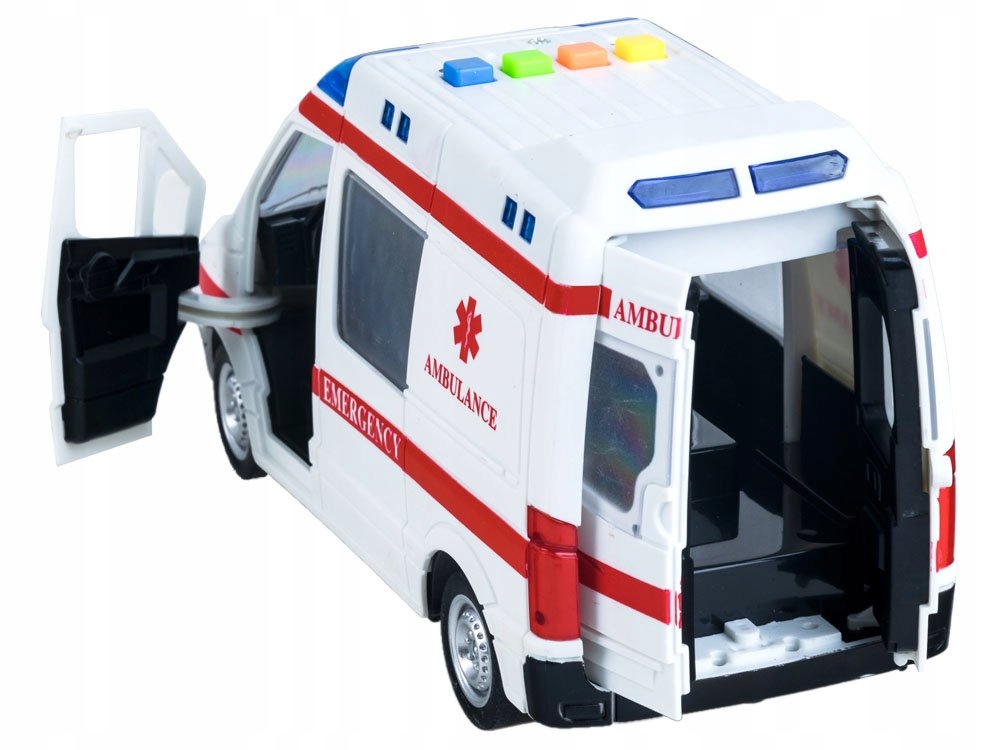 Скорая помощь создана очень реалистично. Направляется с настоящей польской машиной скорой помощи. Автомобиль имеет мигающие огни на крыше. В верхней части кабины скорой помощи. /li>