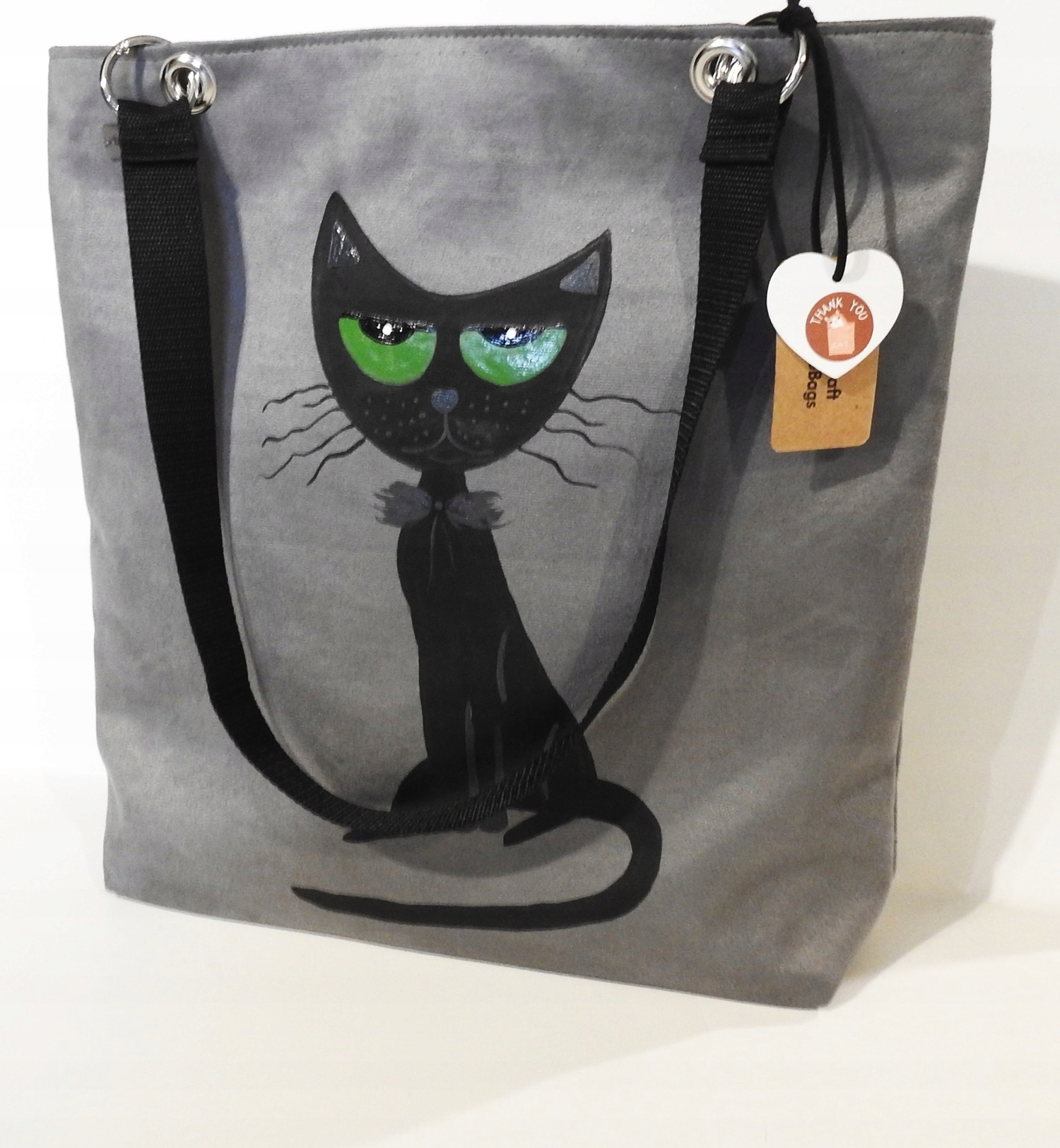 ВЕЛИКА СІРА СУМКА НА ПЛЕЧІ З КОТОМ, РОЗПИСАНА СУМКА РУЧНОЇ РОБОТИ XL