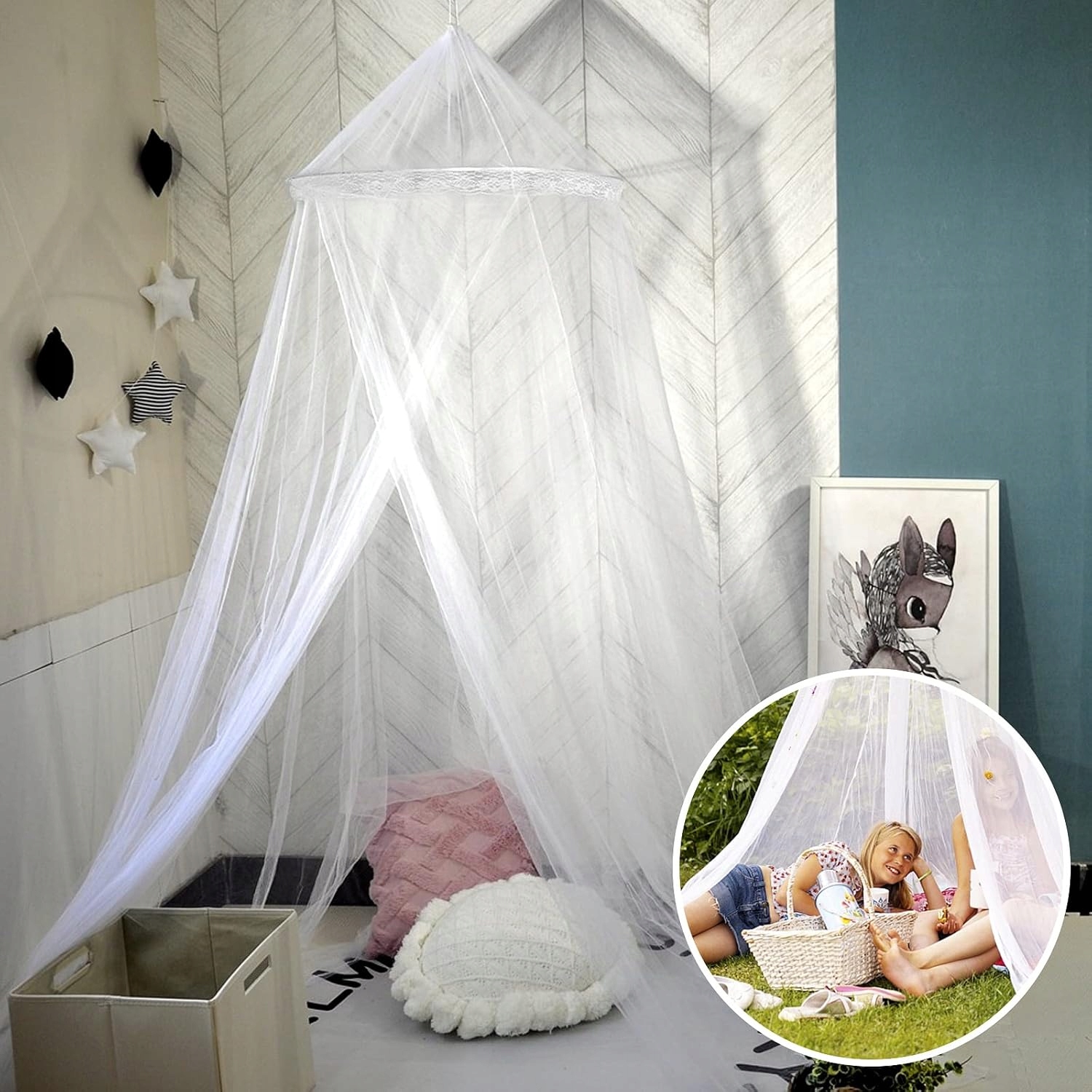 - Практическая сеть комаров на кровати, защищающую от ползущих, бега и летающих насекомых, она имеет форму навеса, благодаря которой она выглядит чрезвычайно эстетической и лучше выполняет свою задачу. Он был сделан из твердого и прочного полиэстера, который эффективно защищает даже от небольших насекомых.